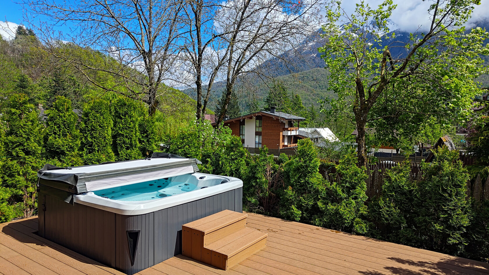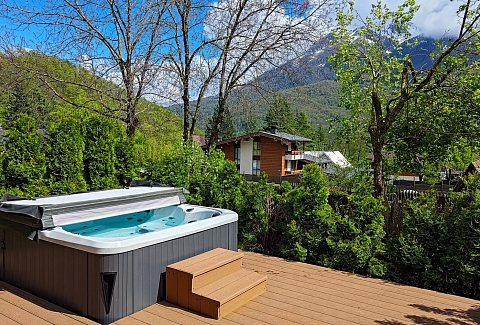 «Жить в Горах Таунхаус» на Красной Поляне предлагает уютное и комфортное проживание в живописном горном районе. Удобное расположение вблизи кафе, ресторанов и магазинов делает это место подходящим для отдыха и досуга. Всего в 15 минутах езды находятся популярные горнолыжные курорты Роза Хутор и канатная дорога, что позволяет насладиться активным отдыхом в любое время года.Двухэтажный таунхаус с сауной, террасой и джакузи расположен на охраняемой территории с видеонаблюдением.