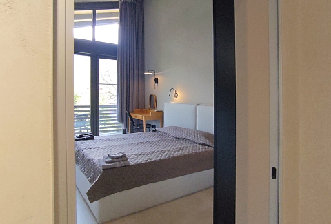 Поездом до ж/д вокзала Адлер, далее на автобусе №105, 105с до остановки «Вертодром», далее пройти 520 м до таунхауса.