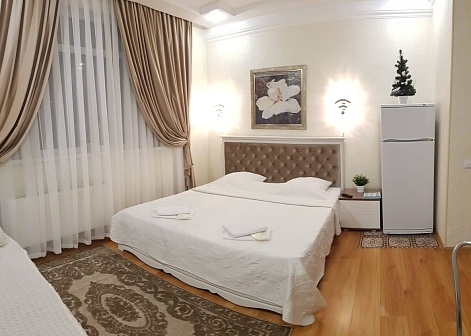 Расстояние от гостевого дома до моря можно преодолеть за 10 минут прогулочным шагом. Номера гостиницы выполнены в классическом стиле. Комнаты светлые и уютные, в них есть кондиционер, большой телевизор, холодильник, фен, работает Wi-Fi. Ежедневно проводится уборка. Ванная комната отдельная на каждый номер, предоставляются банные и пляжные полотенца. В непосредственной близости от гостевого дома располагаются кофейни, столовые и другие точки общественного питания. Стойка регистрации отеля работает в круглосуточном режиме.
