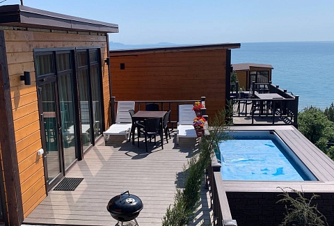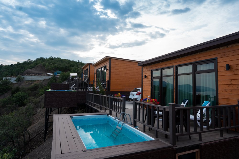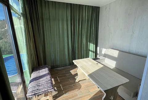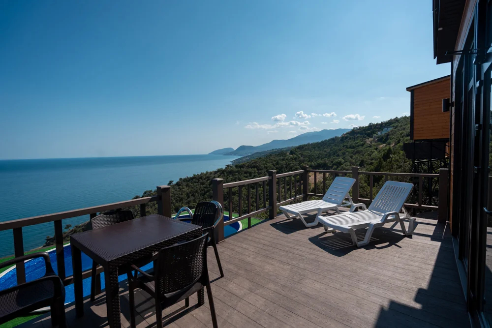 Для гостей доступна парковка.Допускается бесплатное размещение с питомцами. Для простоты передвижения возможна организация трансфера.Любители водных процедур оценят бассейн и открытый бассейн. Здесь рады животным.Это место, можно насладиться тишиной, спокойствием и прекрасными пейзажами. Каждый объект имеет террасу с собственным бассейном и прямым видом на морские просторы, бухту г. Алушты и гору Аю-Даг. Персонал коттеджа говорит на английском и русском.В номерах есть все для комфортного отдыха.