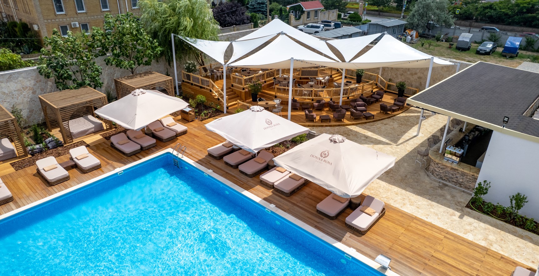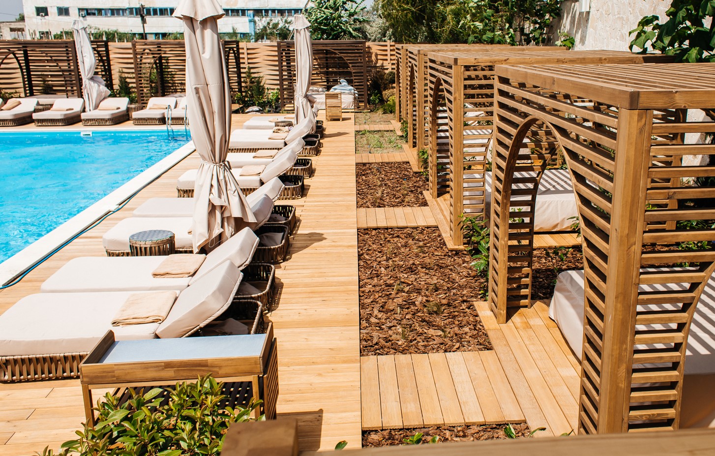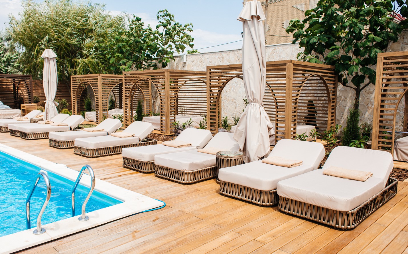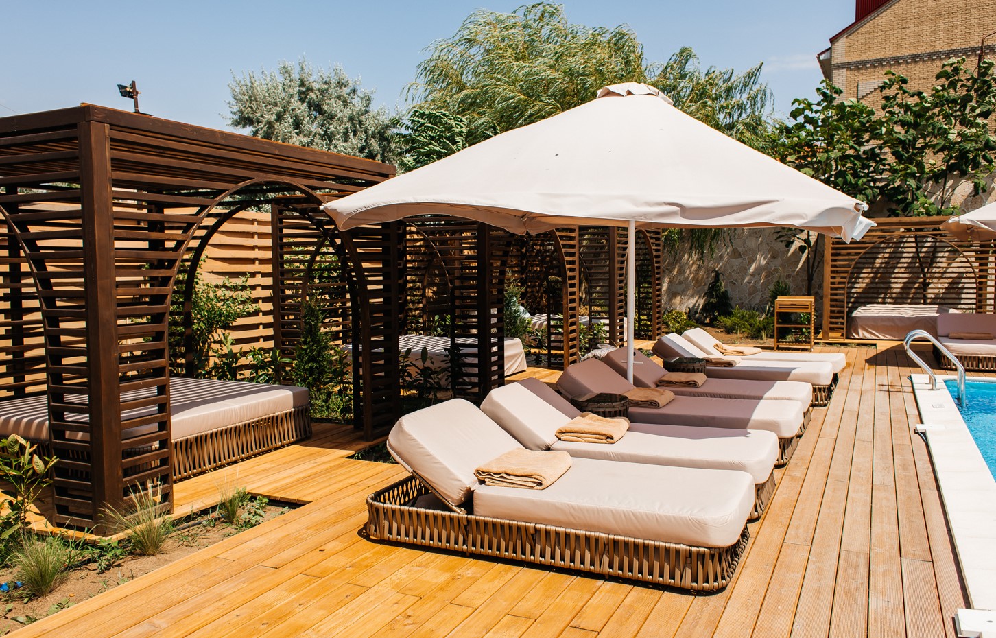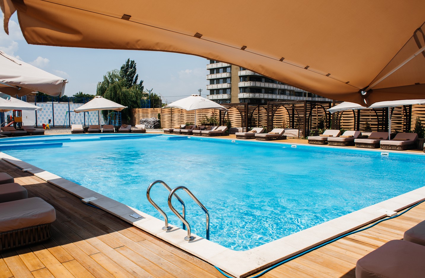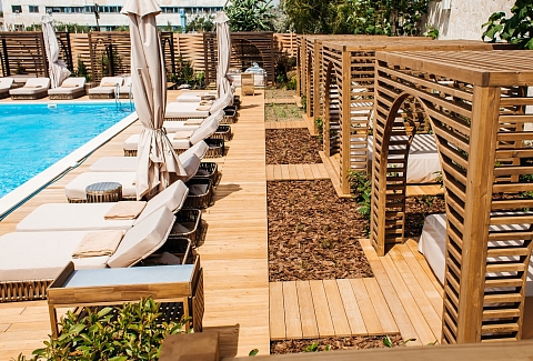 - пользование открытым бассейном
