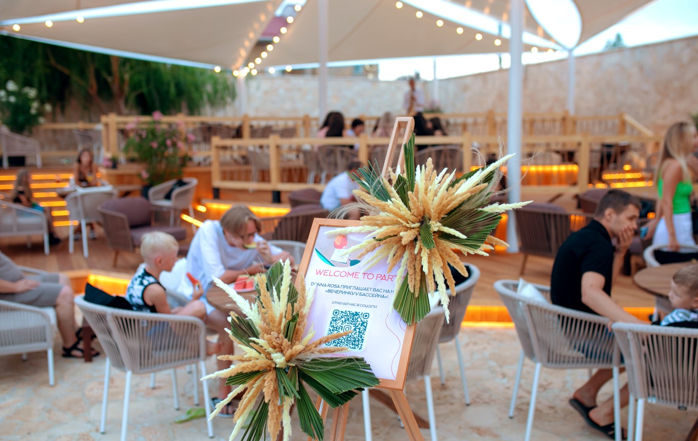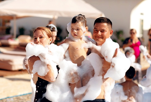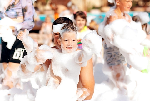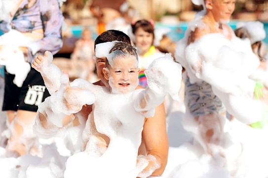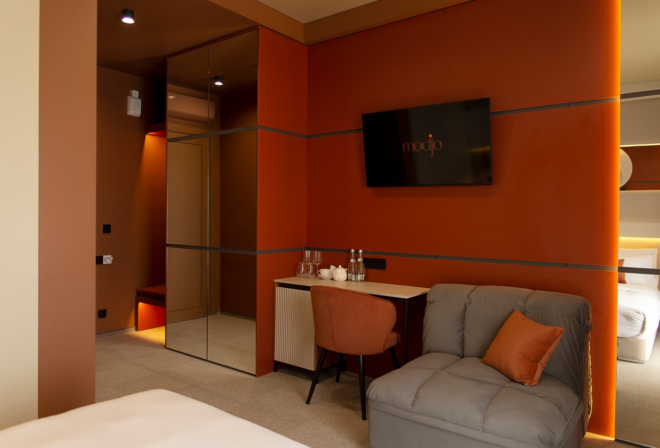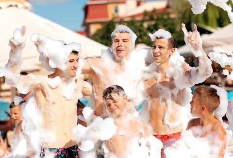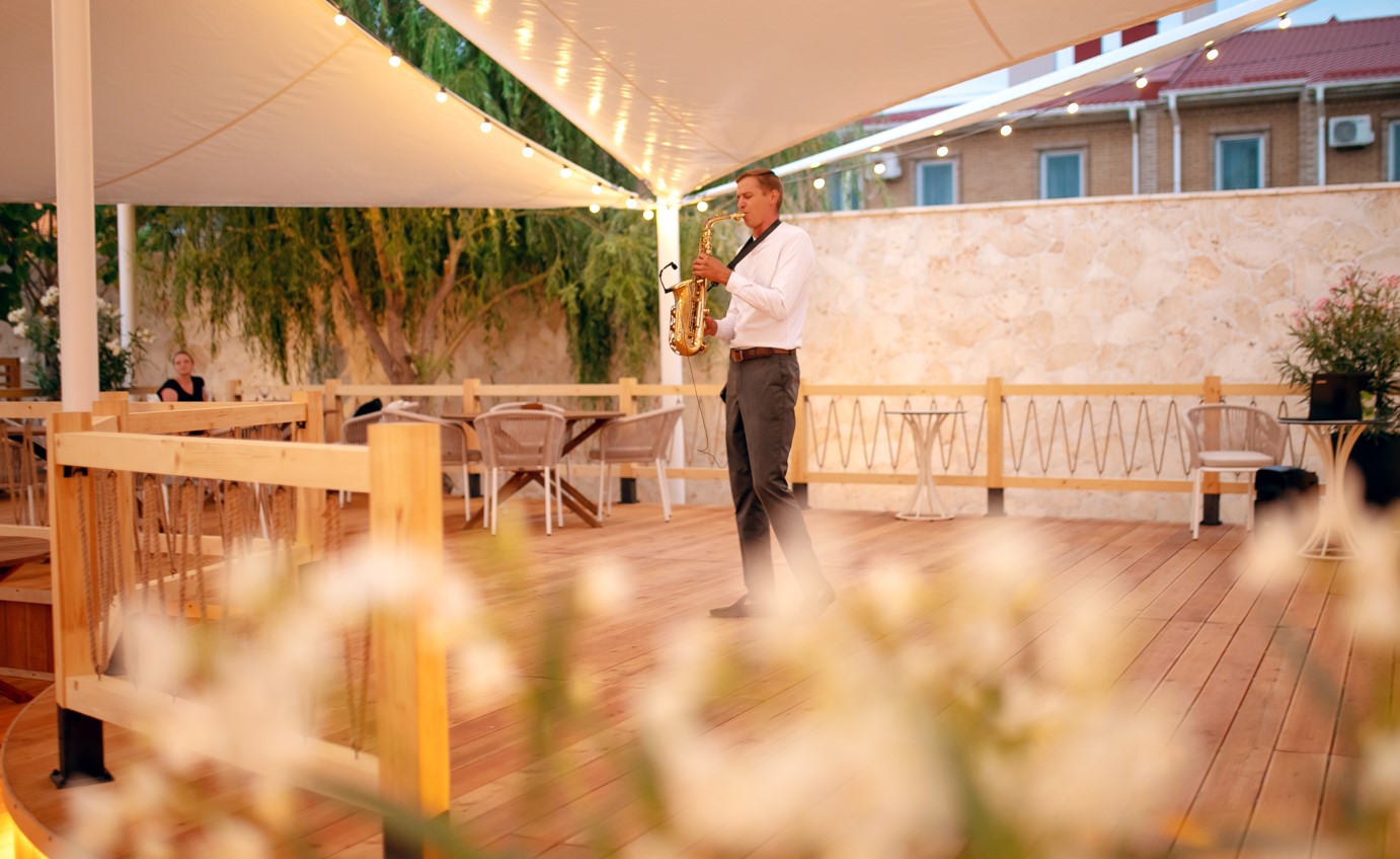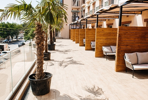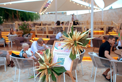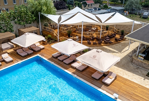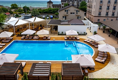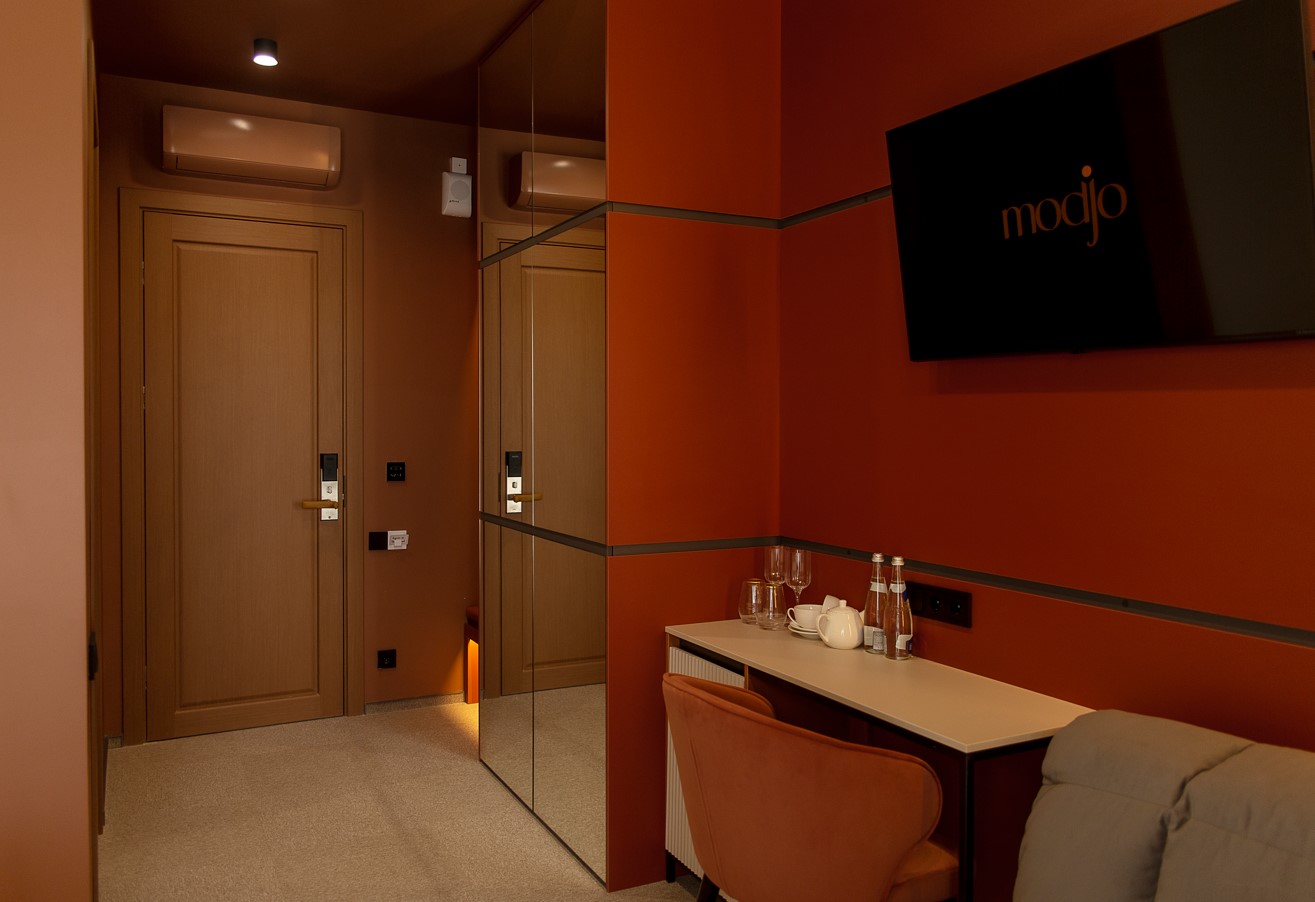 Отель особенно привлекателен для семейного отдыха с детьми.В четырёхэтажном здании отеля «Моджо» (Евпатория), соответствующем современным стандартам, 83 номера. Все они, вне зависимости от категории, оборудованы ванной комнатой, укомплектованы необходимой мебелью, по возможности предоставляются кроватки-манежи для детей. Номера отеля оборудованы кондиционером и мини-холодильником, ТВ и wi-fi, личным сейфом, чайная станция. Собственный Аквапарк «Cosmos». На площади в 800 кв.м . 7 горок.Питание 24/7 предоставляется гостям в ресторане «Modjo», который занимает почти весь первый этаж отеля, а также в лаундж-зоне Pool бара и круглосуточном кафе, которые уютно расположились возле нашего шикарного открытого бассейна.Ресторан «Modjo» – это главный ресторан отеля, преимущественно европейской кухни, с высоким уровнем обслуживания и сервиса. Особая гордость ресторана — открытая кухня, которая порадует свежеприготовленными блюдами на любой вкус.Лаундж-зона Pool бара – это комфортная зона рядом с открытым бассейном на территории отеля.Лаундж-зона работает каждый день с 09:00 до 22:00 и предлагает гостям отеля легкие закуски, фрукты, мороженое, алкогольные и безалкогольные напитки на розлив, в том числе коктейли из Pool бара. Питание в Pool баре входит в стоимость проживания в отеле.Кафе «Birds» работает 24/7, гости отеля в любое время суток смогут перекусить. Кафе предлагает гостям отеля гриль-меню и фаст-фуд, а также свежий салат-бар. Питание в кафе «Birds» входит в стоимость проживания в отеле.
