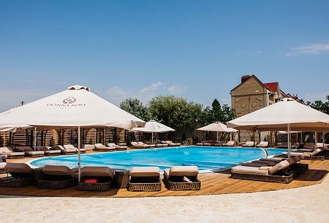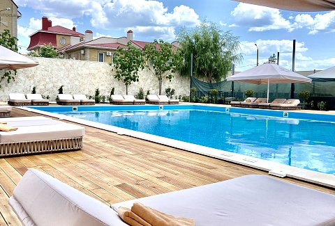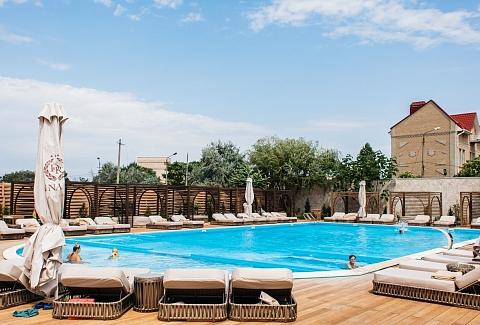 - Бассейны 25*12, глубина 0,6-1,4. Оборудован зоной джакузи