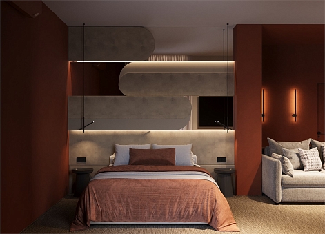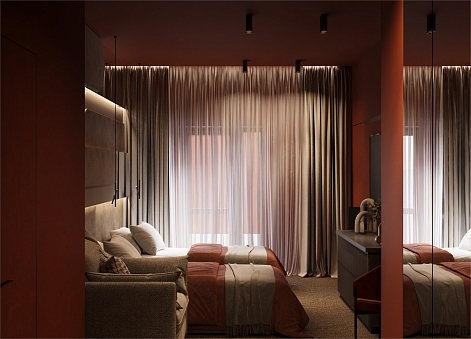 В номере: вешалка, зеркало, кресло-кровать, кровати односпальные /одна двуспальная кровать, прикроватные столики, столик туалетный, стул, шкаф, кондиционер, сейф, телевизор, чайная станция
