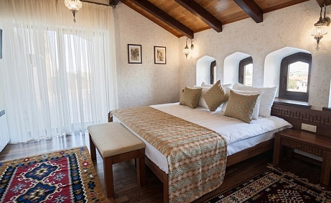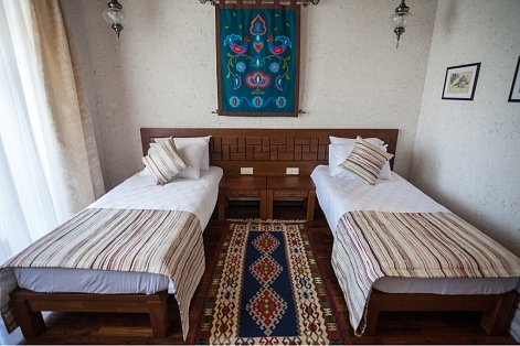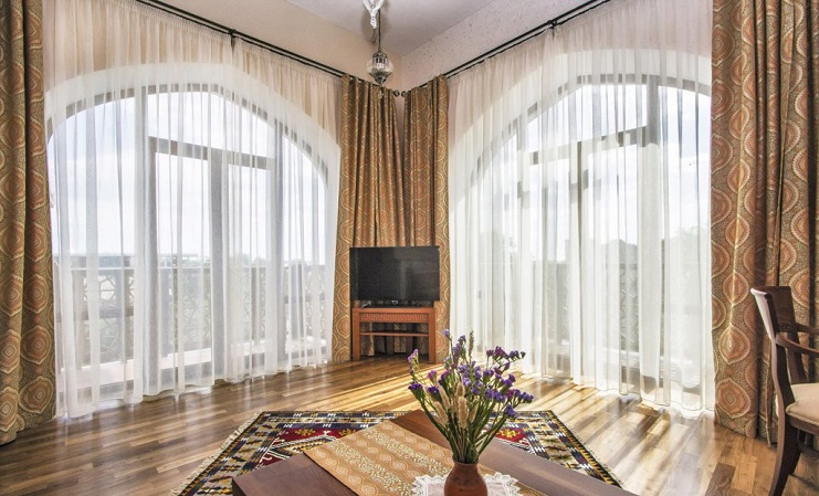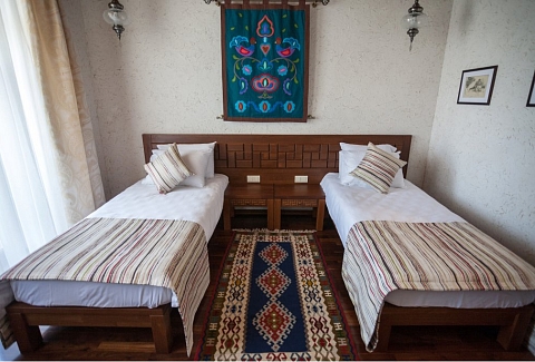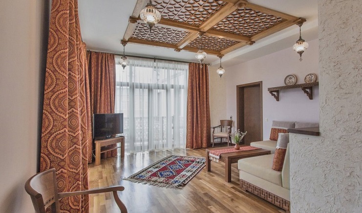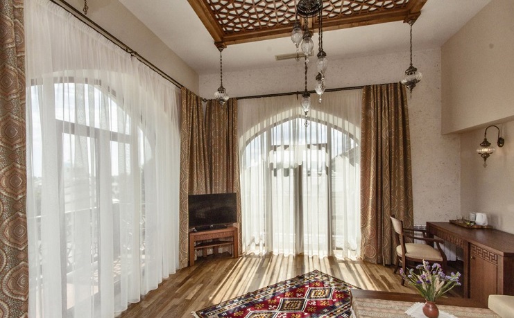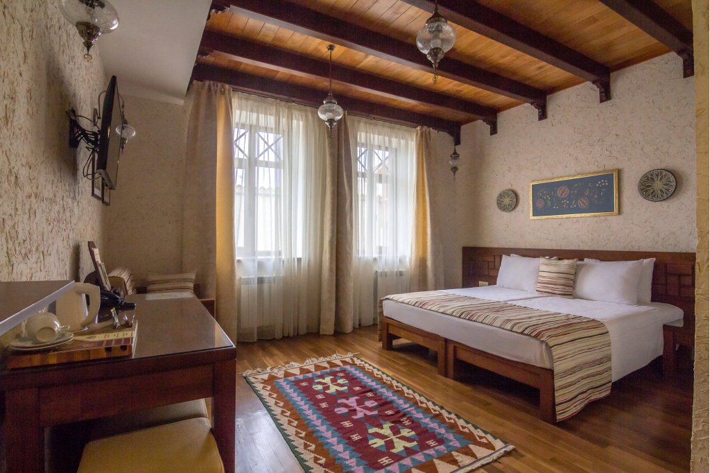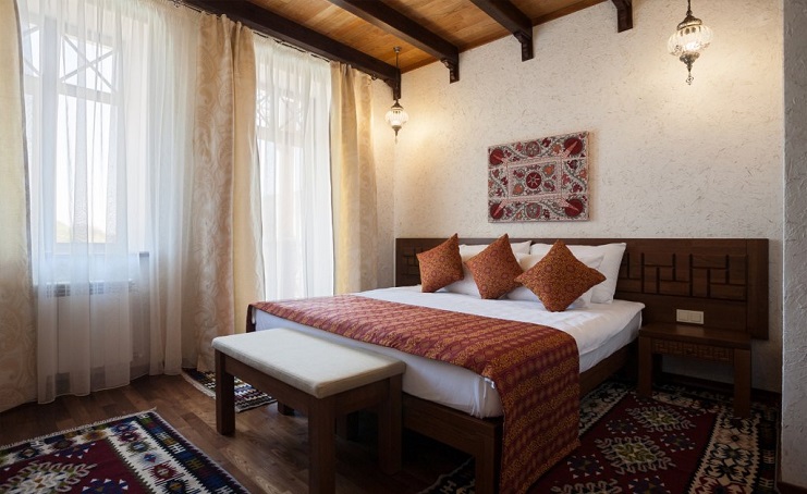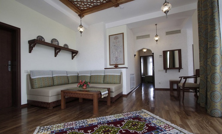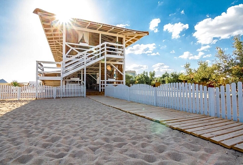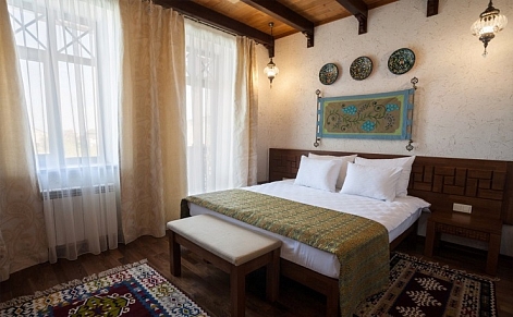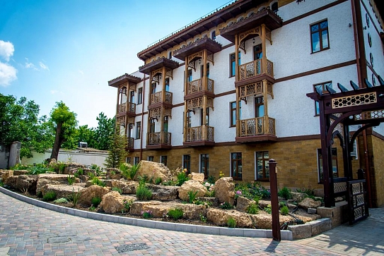 Четырехзвездочный эко-отель «Джеваль» расположен в историческом центре Евпатории, в шаговой доступности от набережной и главных городских достопримечательностей. За 15 минут можно доехать до евпаторийского Дельфинария или аквапарка. В 5 минутах езды находится железнодорожный вокзал, дорога до аэропорта Симферополя займет около часа.