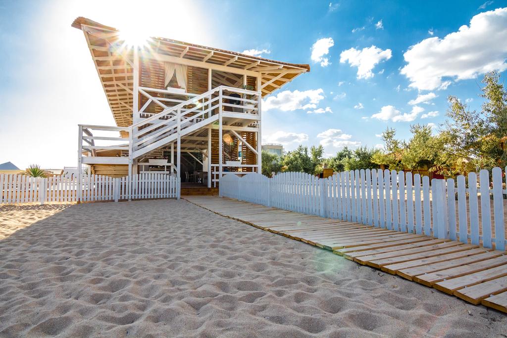 Современный четырехэтажный корпус отеля, оснащенный лифтом, занимает небольшую облагороженную территорию. Жилой фонд рассчитан на единовременное заселение 57 человек. Гости могут выбрать номера категории Стандарт, Люкс или разместиться в Апартаментах. В отделке номеров использованы только натуральные ткани и материалы, а также современные технологии: отопление на эко-топливе, современная система очистки воды и другие. В каждом номере есть отдельный санузел с душем, необходимая техника — кондиционер, телевизор, фен, электрочайник. При эко-отеле работает ресторан, есть обеденный зал и летнее кафе. Отдыхающим доступны услуги прачечной, беспроводной интернет, по вечерам устраиваются анимационные шоу. Для автолюбителей возле корпуса организована охраняемая парковка. Главный городской пляж расположен в 5 минутах ходьбы, до благоустроенного песчаного пляжа — 3 километра.