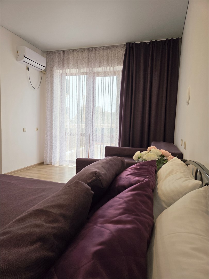 В номере: вешалка, диван, зеркало, кресло-кровать, кровать двуспальная, прикроватные тумбочки, стол, стулья, шкаф, кондиционер, телевизор, холодильник