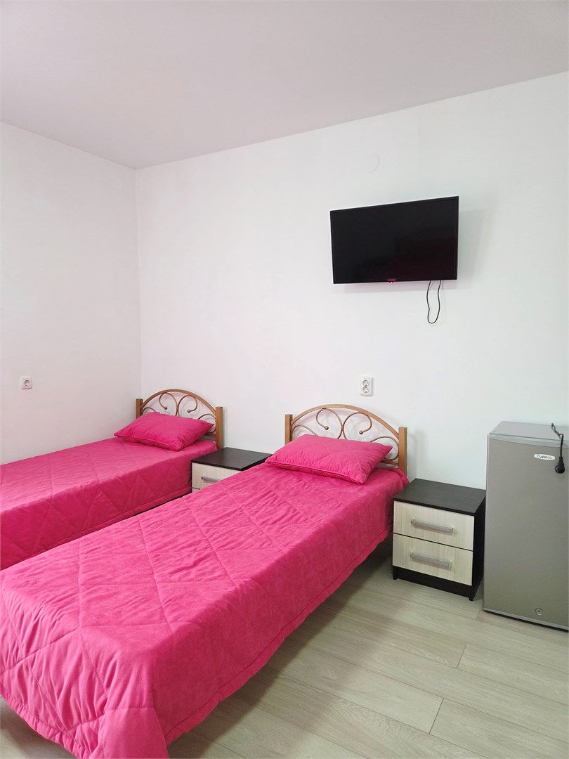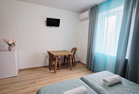 Каждый номер оснащен качественной мебелью, ортопедическими матрасами, телевизором, холодильником, сплит-системой, а также собственным санузлом с душевой. Для каждого гостя подготовлены комплект постельного белья и полотенца. На всей территории работает беспроводной интернет.Для самостоятельного приготовления пищи гостям доступна общая кухня с необходимым оборудованием. Есть уютный зал-столовая, а также зона барбекю на свежем воздухе — отличное место для приготовления блюд на мангале. При необходимости можно воспользоваться услугами прачечной.«Мерджан» — это место, где можно наслаждаться тишиной и красотой природы, находясь всего в нескольких минутах от моря. Гостевой дом идеально подходит для пар, ценящих спокойный и размеренный отдых, а также для семей с детьми, которые оценят близость к песчаному пляжу и лечебному озеру. Атмосфера здесь располагает к уюту, домашнему теплу и неторопливому ритму, вдали от городской суеты.