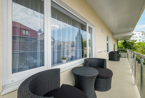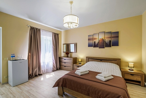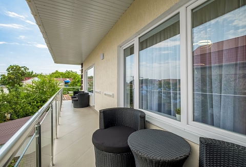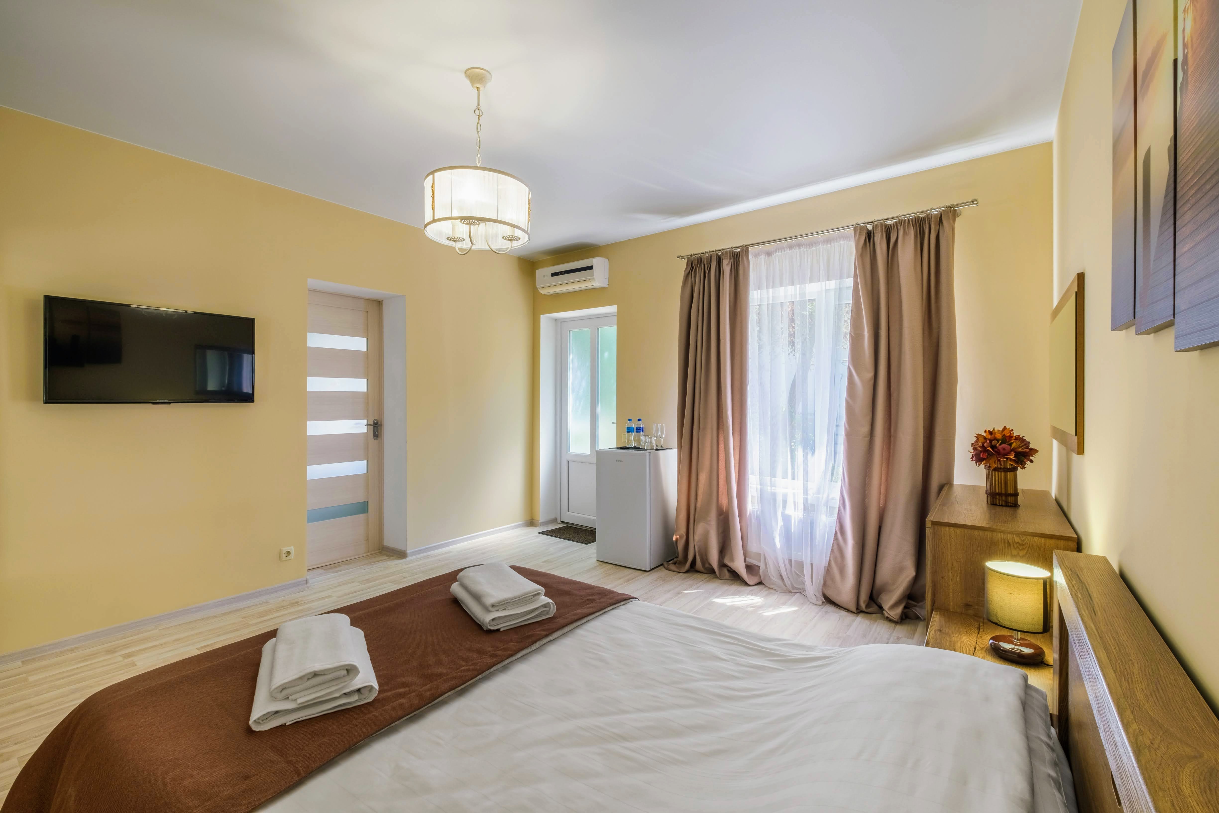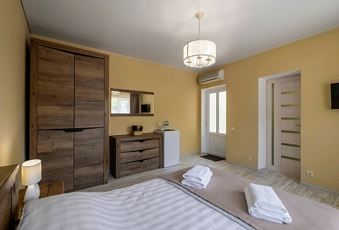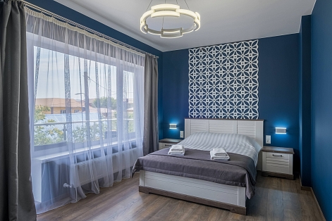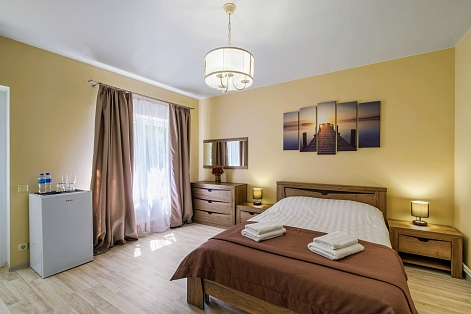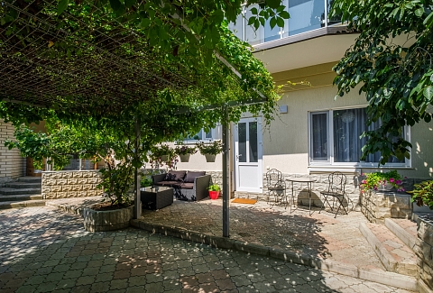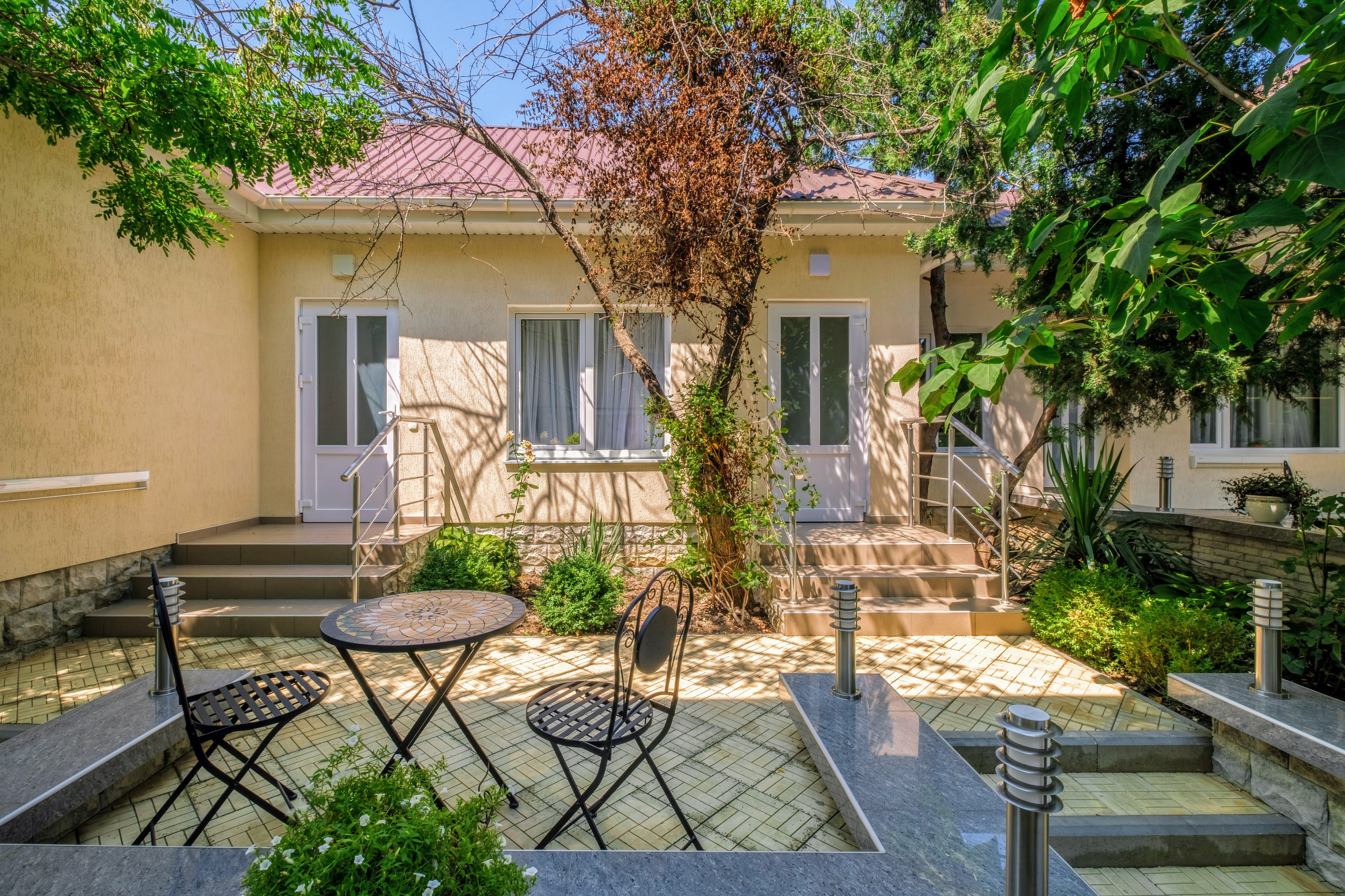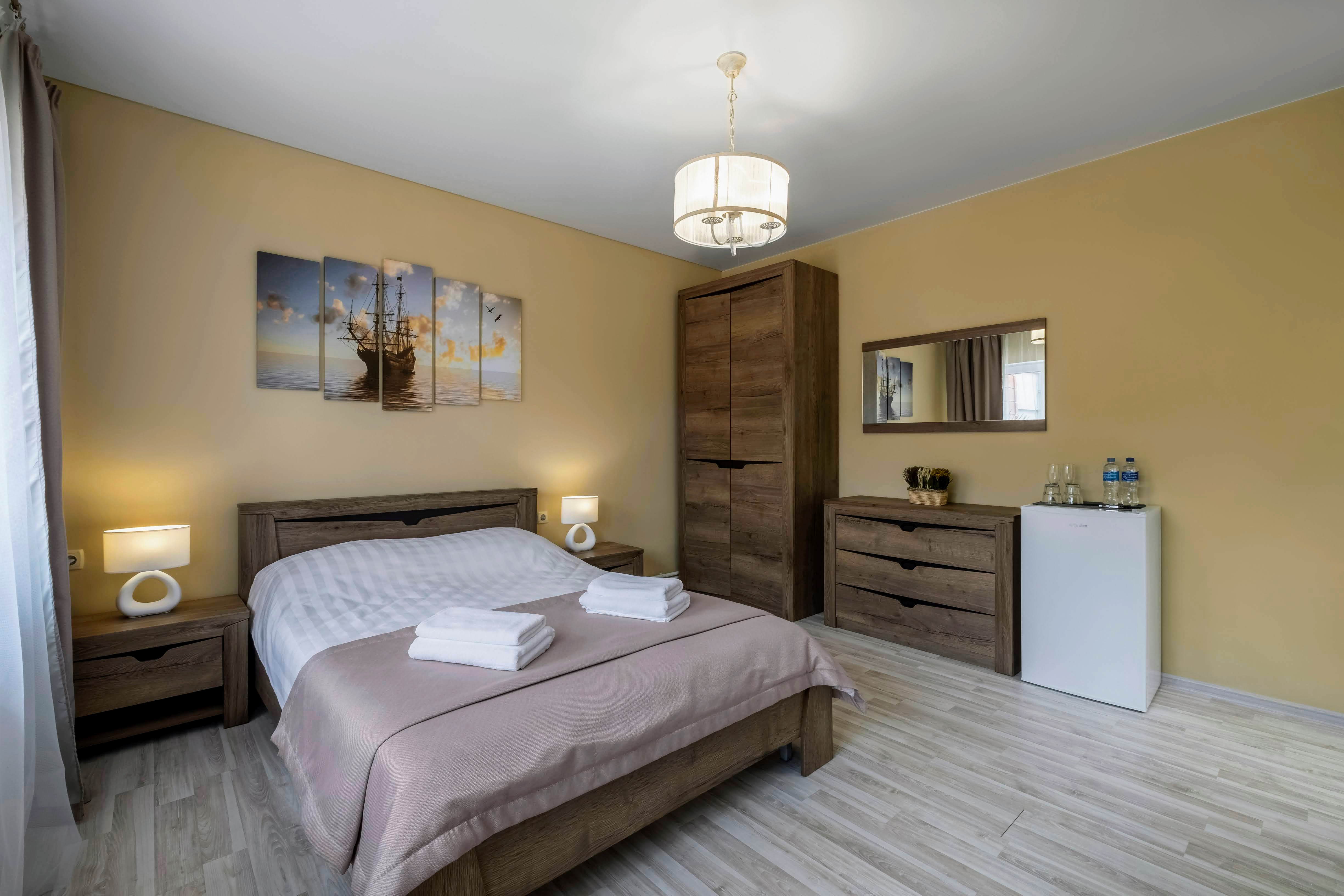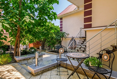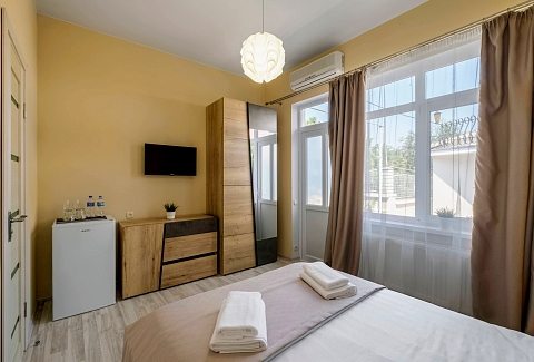 В шаговой доступности работают магазины, точки общественного питания, экскурсионные бюро, аптеки и многое другое. Расстояние до аэропорта составляет 116 километров, до железнодорожного вокзала – 195 километров. Номерной фонд расположился в 2-этажном здании. В комнатах выполнен современный ремонт в светлых оттенках, установлена удобная мебель для отдыха, есть места для хранения одежды. К услугам гостей телевизор с плоским экраном, кондиционер, мини-холодильник, электрический чайник, Wi-Fi. Санузел индивидуальный, с душем или ванной, полотенцами и туалетными принадлежностями. На территории гостевого дома находится кухонная зона в общем доступе, оборудованная необходимой техникой и посудой для самостоятельного приготовления еды. На свежем воздухе есть мангальная зона и места для отдыха. Общественный песчано-галечный пляж расположился в 1,2 километрах от гостиницы. Береговая линия оборудована шезлонгами, зонтами от солнца, навесами, раздевалками, спасательными пунктами.