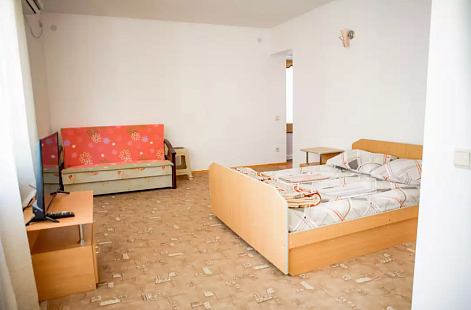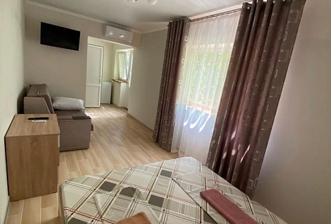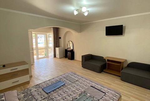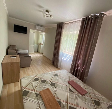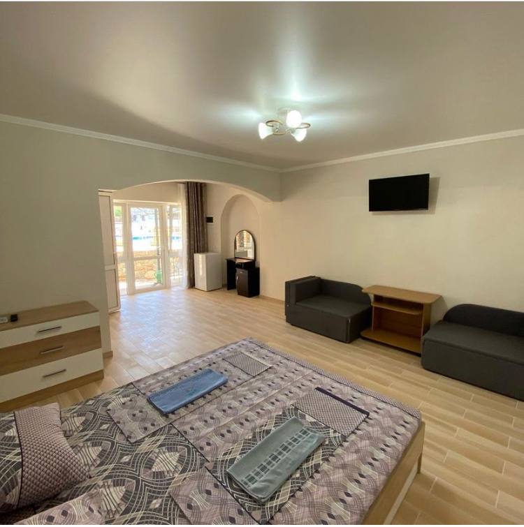 В номере: вешалка, диван, зеркало, кровати односпальные /одна двуспальная кровать, стол, стулья, шкаф, кондиционер, телевизор, холодильник