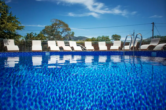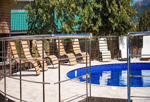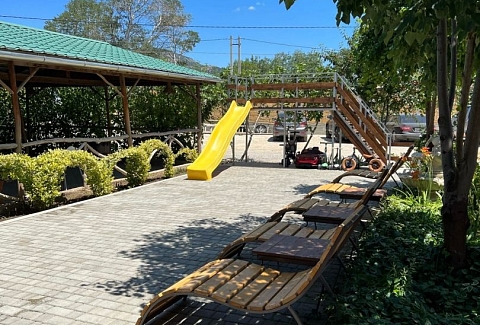 Пляж городской, песчано-галечный, с обычной для курорта инфраструктурой. Номерной фонд «Лозы» представлен стандартами разной вместимости. В каждом номере — всё необходимое для комфортного проживания. На территории гостевого дома есть открытый бассейн с пресной водой. Также оборудована мангальная зона с беседкой — можно готовить на углях. Для автомобилей предусмотрена парковка. Работает собственное кафе, где можно позавтракать или поужинать, не выходя за пределы отеля.