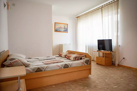 В номере: вешалка, зеркало, кровати односпальные /одна двуспальная кровать, прикроватные тумбочки, шкаф, кондиционер, телевизор, холодильник