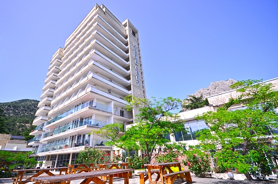 Отдых в ГК «Новый Свет» не бывает скучным – пешеходные тропы, экскурсии и дискотеки доступны всем отдыхающим.В 12-этажном корпусе гостей принимают в номерах разного класса – от «эконом» до «люкса». В зелени парка, окружающего гостиницу «Новый Свет» в Крыму, есть и гостевые домики с полными удобствами.Питание и напитки подаются в ресторане, баре «Дельмар» и кафе «Триплюсдва». К услугам отдыхающих гостиницы «Новый Свет» разнообразие спортивных занятий: шашки, шахматы, фитнес, тренажеры, бильярд. В теплое время года взрослых и детей развлекают аниматоры.Оборудованный пляж находится от гостиничного комплекса в шаговой доступности. Напрокат водные развлечения - каяки, катамараны и др.