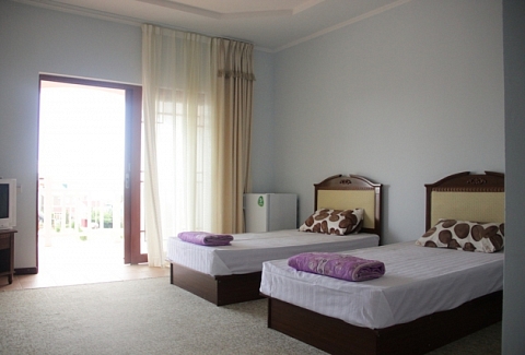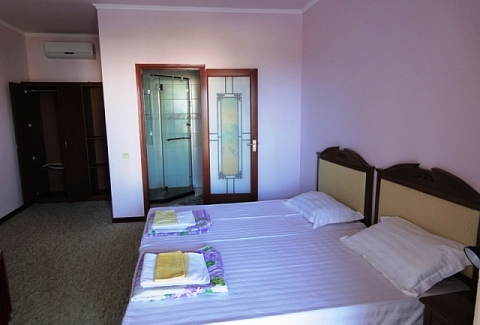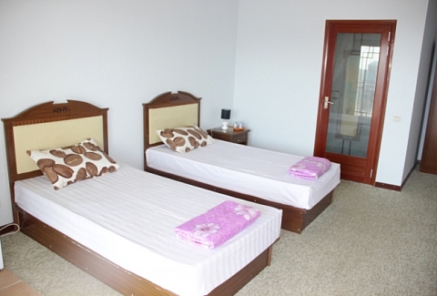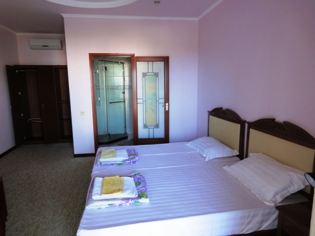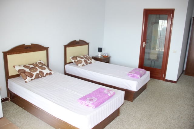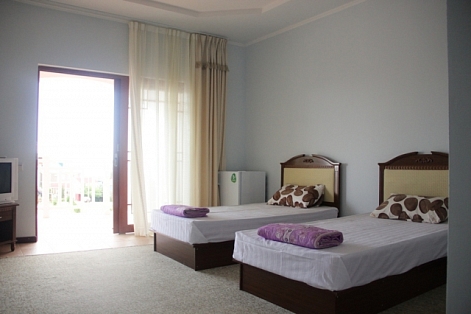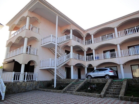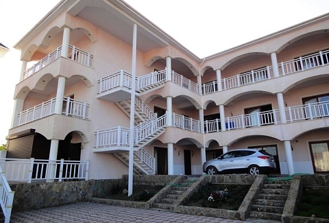 Четырехэтажное здание отеля занимает небольшую территорию площадью 5000 кв.м. Гостей ожидают светлые и просторные номера Стандарт и Комфорт. В каждом номере есть собственная ванная комната с душем, бытовая техника — телевизор, кондиционер, холодильник, и широкая терраса. В отеле работает столовая, где гости могут приобрести себе комплексное питание. На территории есть открытый 14-ти метровый бассейн, для автолюбителей возле здания организована парковка. Отдыхающим доступны услуги прачечной, беспроводной интернет, есть возможность аренды машины. Поселковый галечный пляж расположен в 500 метрах от отеля. На пляже есть все необходимое — шезлонги, лежаки, кабинки для переодевания, много водных развлечений, вдоль побережья работают бары и кафе.