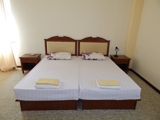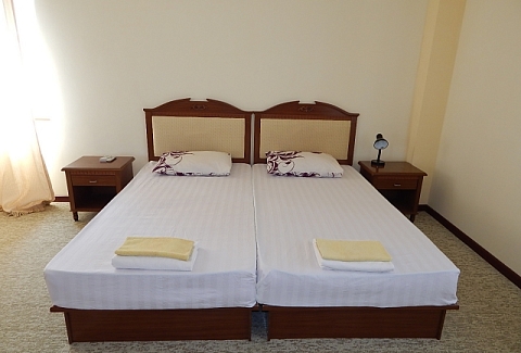 В номере: кровати односпальные /одна двуспальная кровать, прикроватные тумбочки, стол, стул, шкаф, телевизор, холодильник