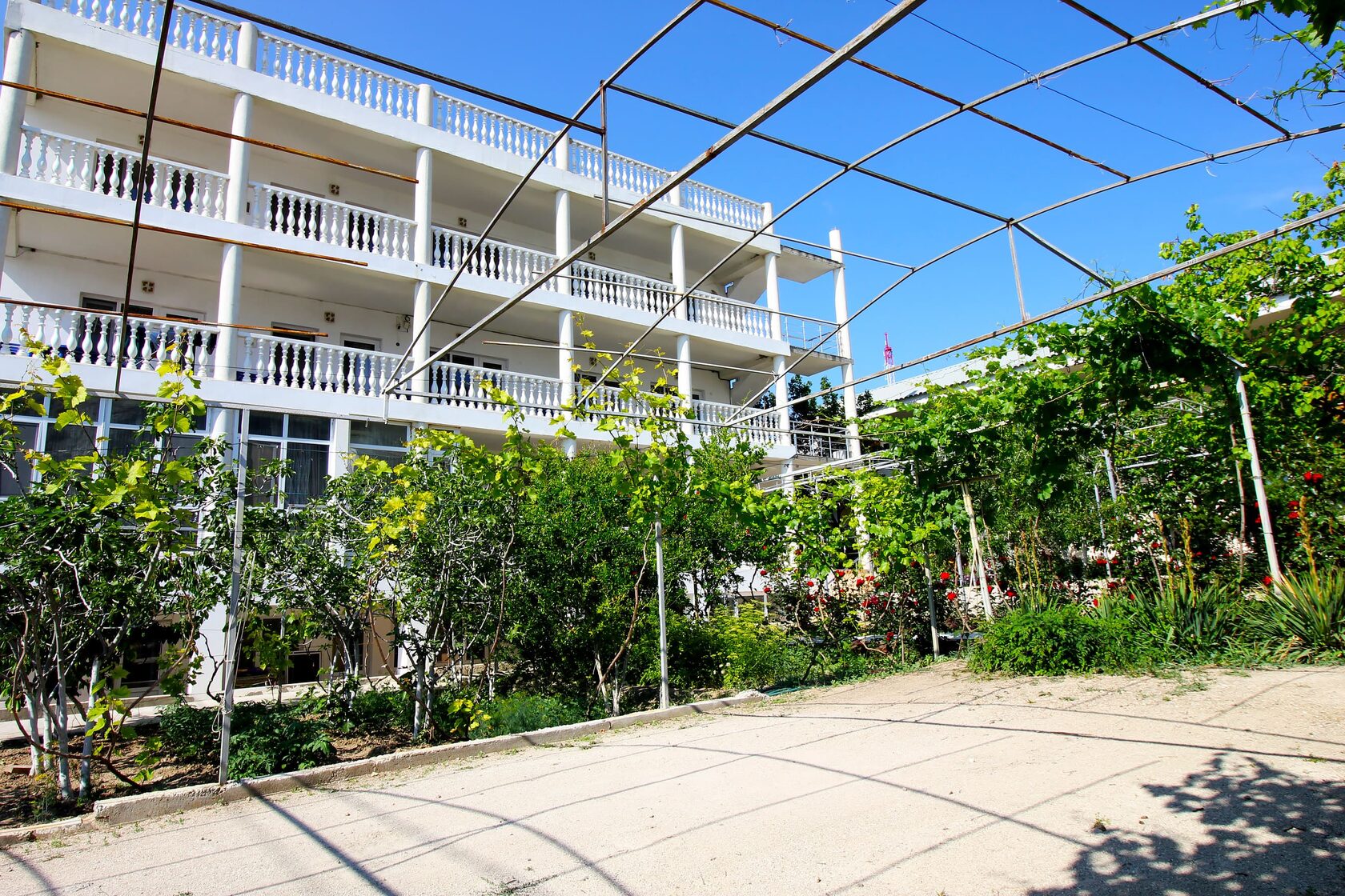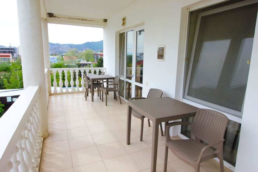 Номера разного уровня вместимости расположились в 3-этажном здании. Комнаты полностью мебелированы, в них есть телевизор, кондиционер, мини-холодильник, электрический чайник. Санузел с душем, полотенцами и туалетными принадлежностями. В апартаментах оборудована собственная кухонная зона с электрической плитой, холодильником, микроволновой печью, стиральной машиной и набором необходимой посуды. Для отдыха на балконах установлена садовая мебель. Отдыхающие, приехавшие на личном транспорте, могут оставить его на парковке. Стойка регистрации работает в круглосуточном режиме. Для маленьких постояльцев оборудована детская игровая площадка. Ближайший пляж галечный, с шезлонгами, навесами, зонтами от солнца, раздевалками и водными развлечениями на любой вкус.