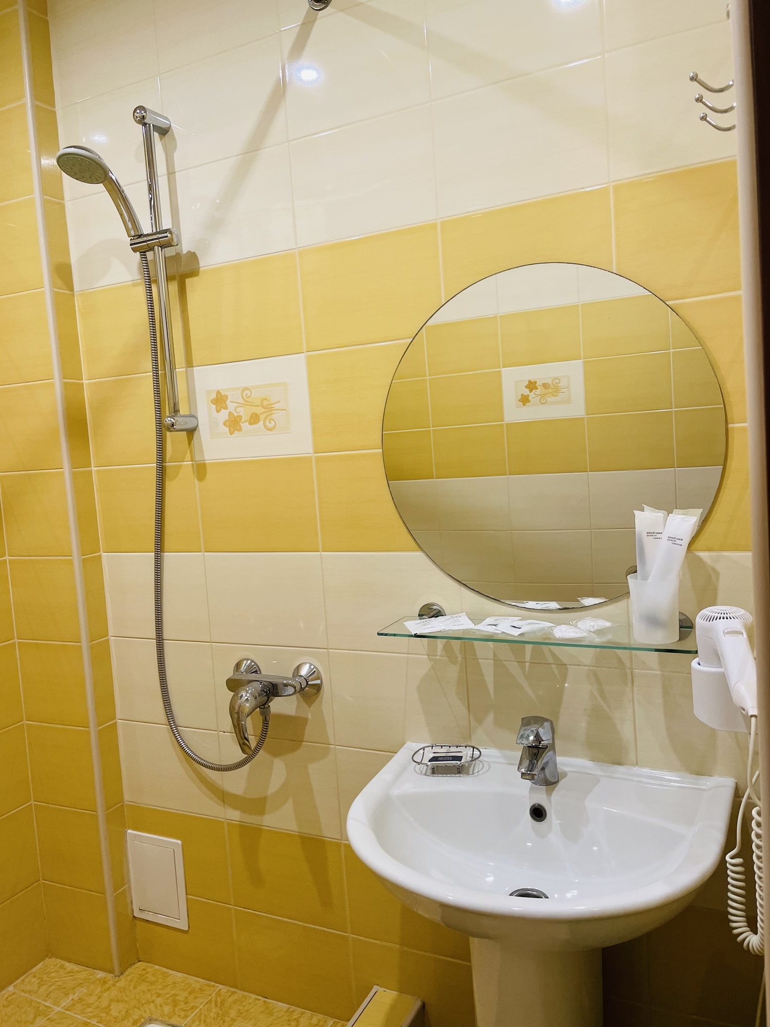 Санузел: с душевой кабиной, туалетные принадлежности, фен