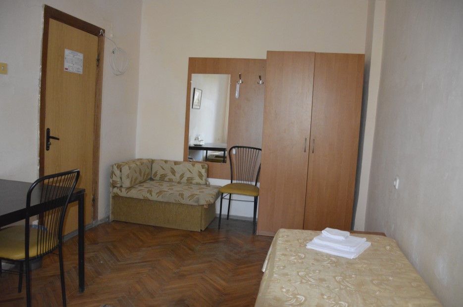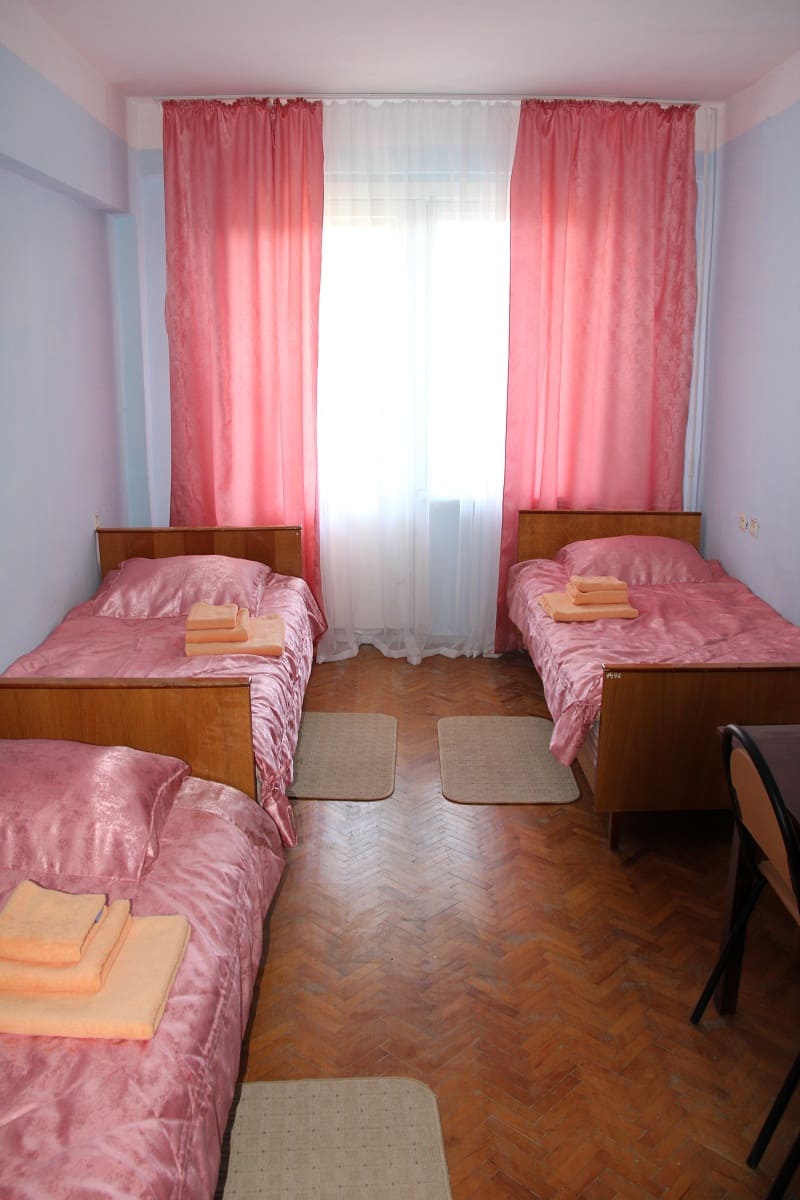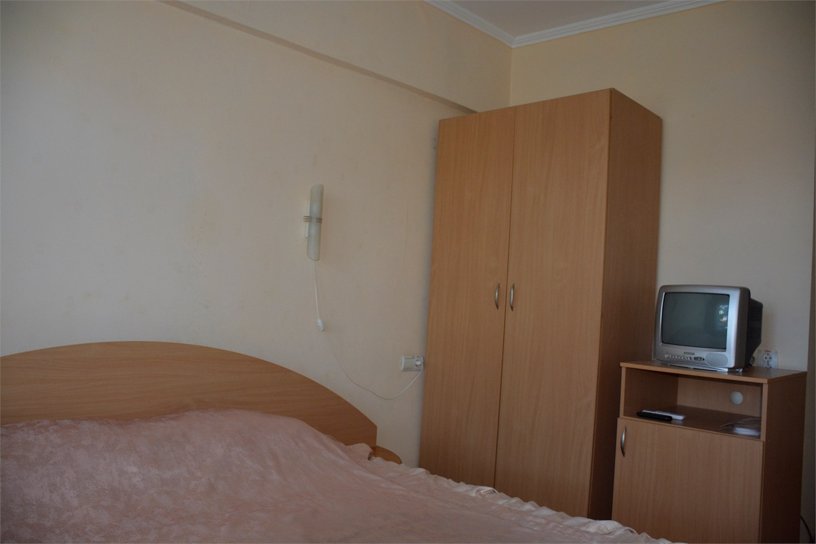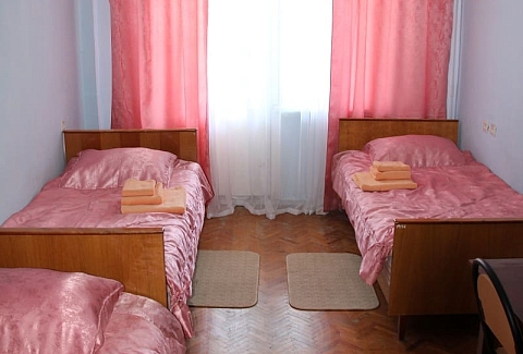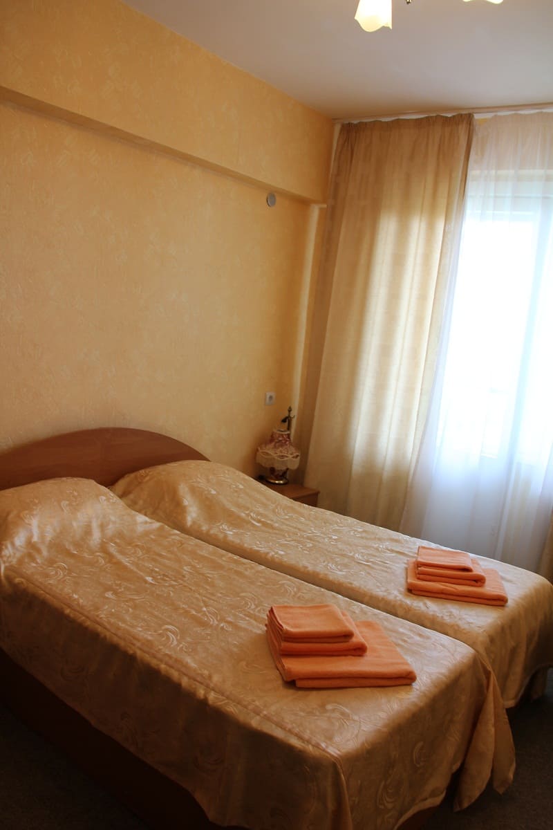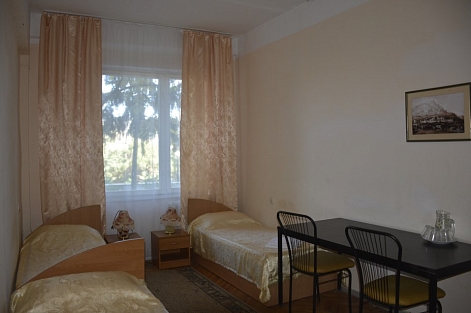 В номере: вешалка, зеркало, кровати односпальные /одна двуспальная кровать, прикроватные тумбочки, стол, стулья, шкаф, кондиционер, набор посуды, телевизор, холодильник, электрочайник