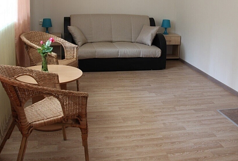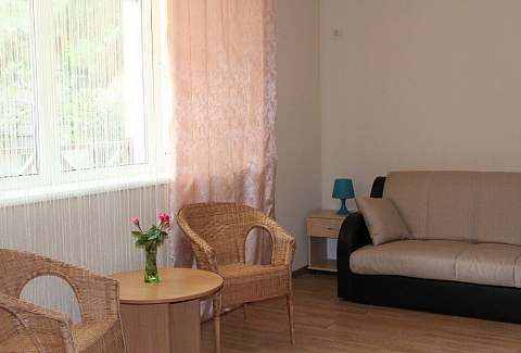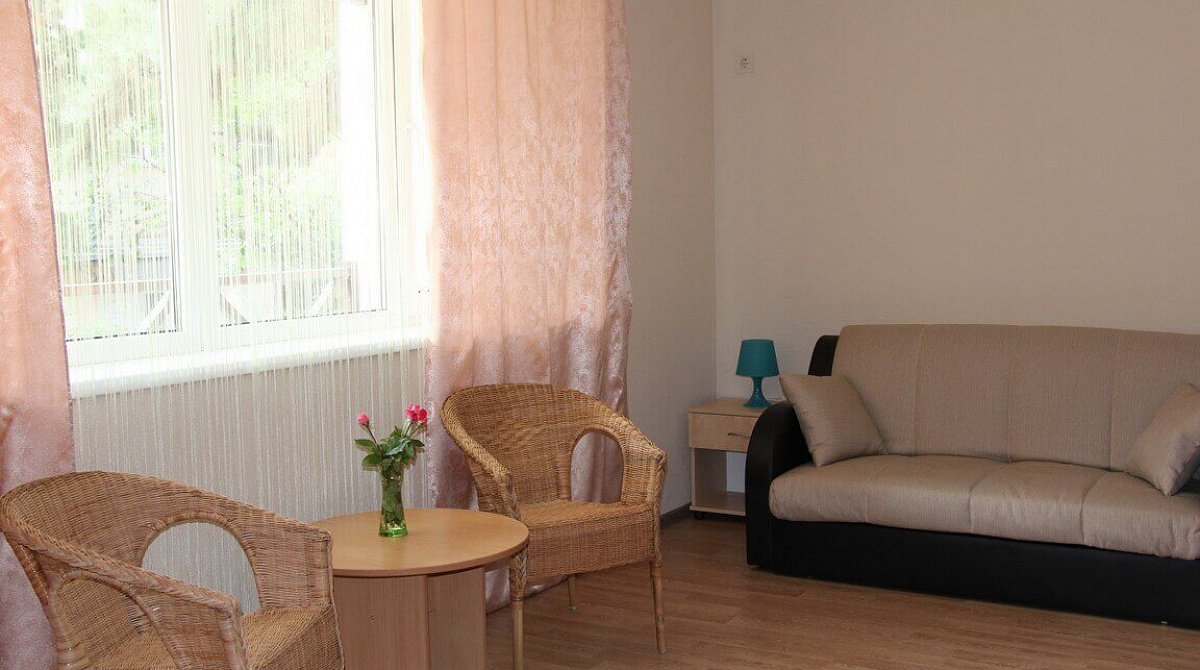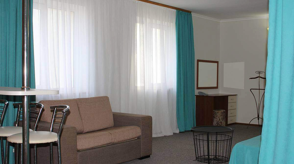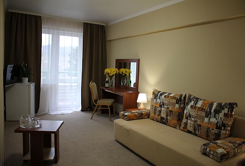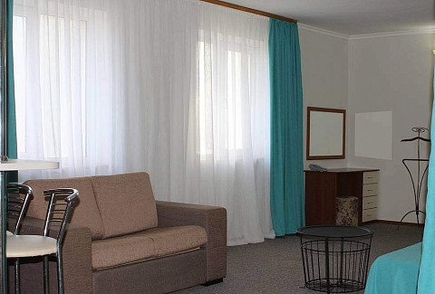 В номере: вешалка, диван раскладной, зеркало, комод, кровати односпальные /одна двуспальная кровать, набор мягкой мебели, прикроватные тумбочки, стол, столик туалетный, стулья, тумба под телевизор, шкаф, гладильная доска, кондиционер, стиральная машина, телевизор ЖК, утюг, холодильник, чайный набор посуды, электрочайник