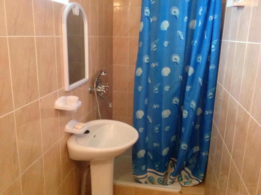 Санузел: с душем, туалетные принадлежности, фен