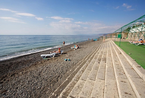 Поездом до ж/д вокзала г. Симферополь, от автостанции «Курортная» рейсовым автобусом до автовокзала г. Судак, далее на маршрутном такси до автостанции п. Морское, далее пешком до пансионата 300 м.