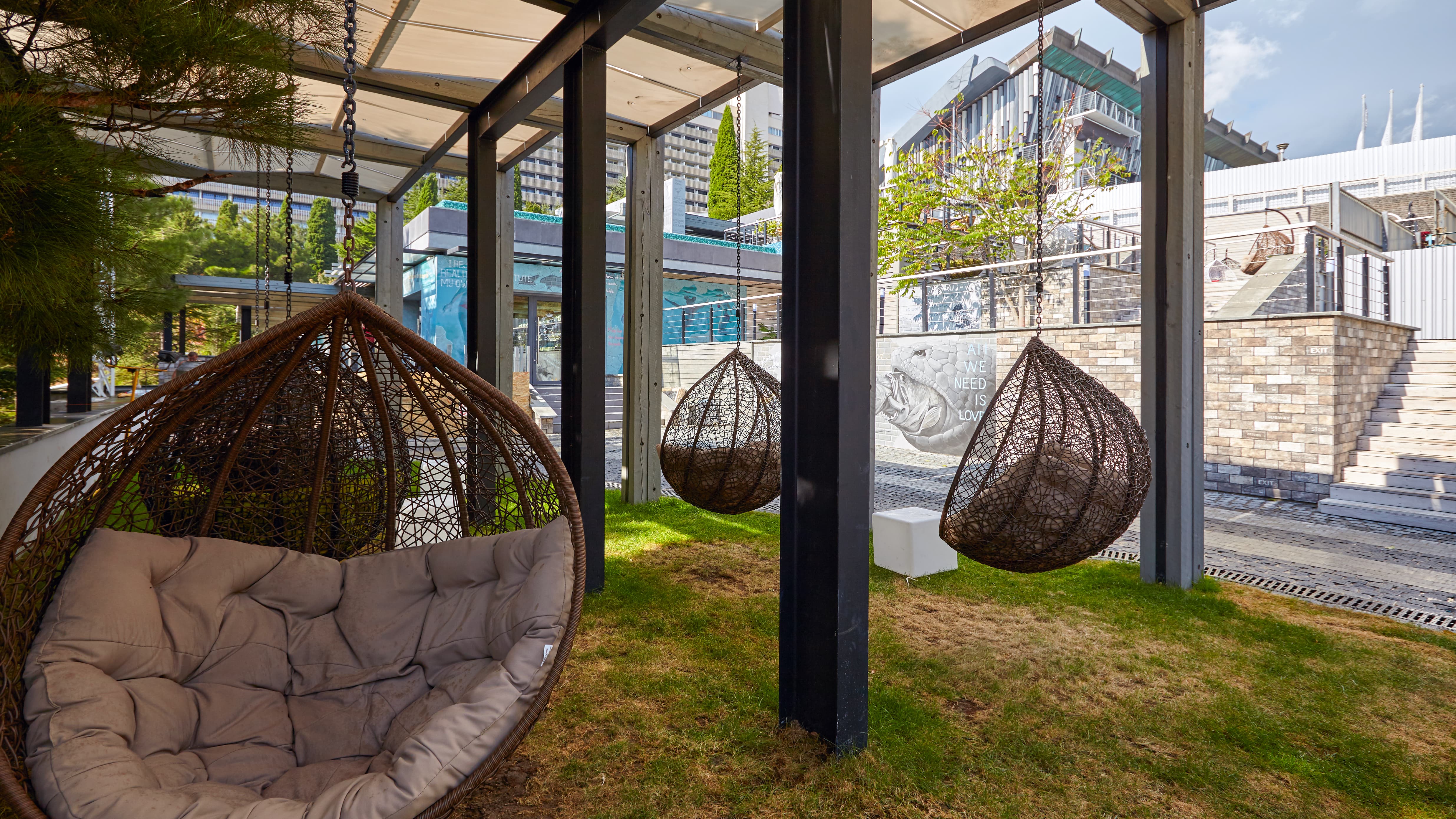 - комплекс бассейнов переливной бассейн «Инфинити» с подогреваемой пресной водой и гидромассажем и с pool-баром, 50-метровый Олимпийский открытый бассейн, детский бассейн, прыжковой бассейн с 10-метровой вышкой