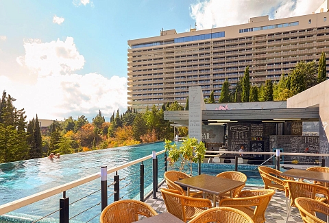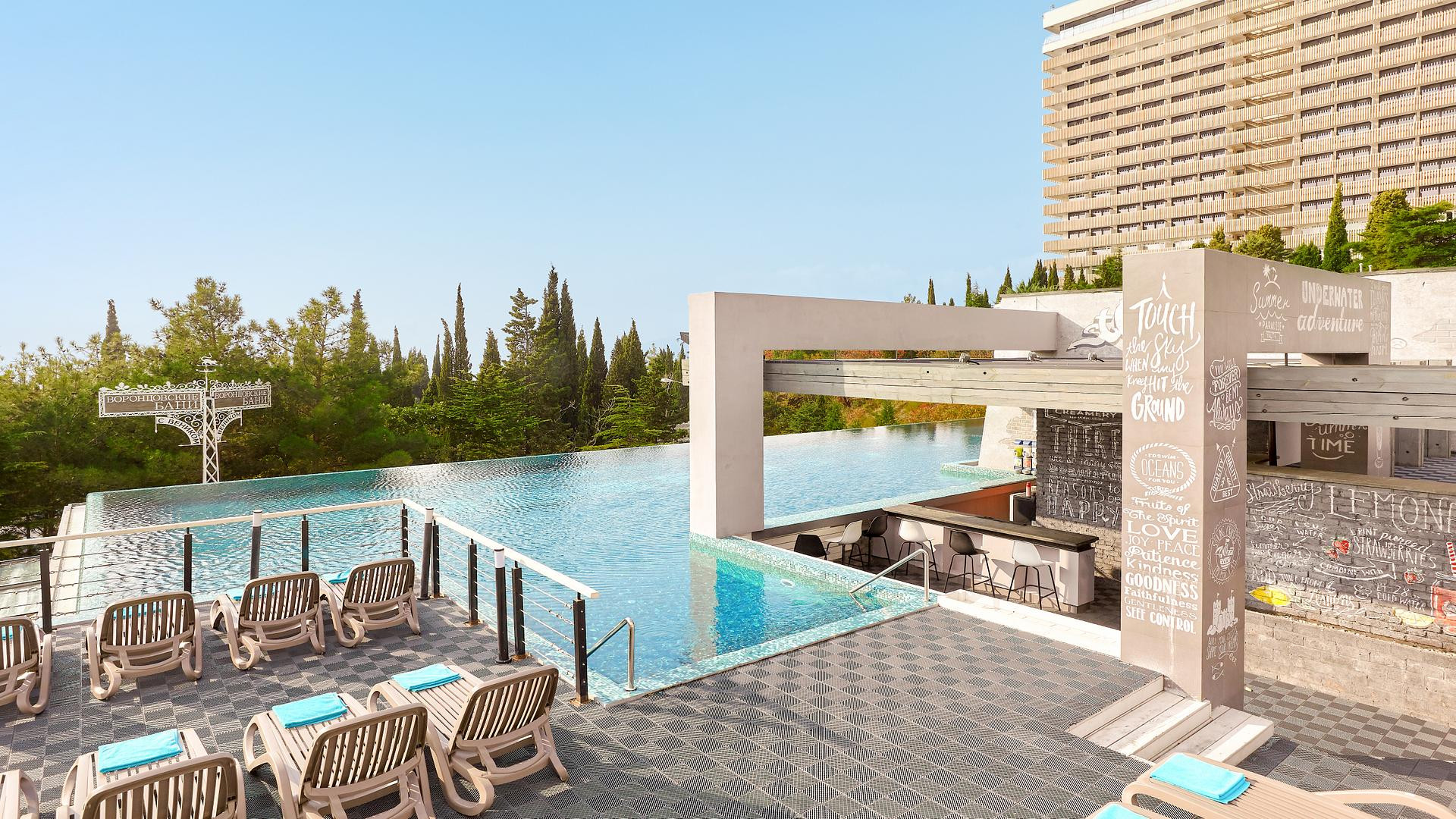У любителей активного отдыха есть возможность пользоваться большим 50-метровым подогреваемым бассейном с морской водой, где проводятся занятия по аквааэробике и водному поло, инфинити-бассейном с невероятным видом на море, прыжковым бассейном с 10-метровой вышкой, современным аквапарком. К услугам гостей также тренажерный зал, футбольная, волейбольная площадка и теннисный корт. В отеле предусмотрены условия для проведения оздоровительных процедур: работает первый в Крыму «Центр грязеомоложения сакской грязью», «Центр омоложения лица и тела», соляная пещера, тайский СПА с хаммамом, Воронцовские русские бани, сауны и «Центр массажа», в которых можно пройти программу по уходу за лицом и телом.