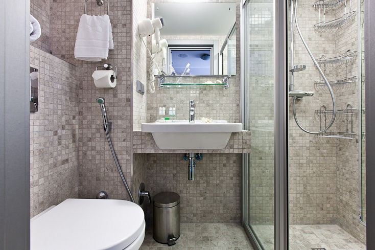 Санузел: с душем, туалетные принадлежности, фен