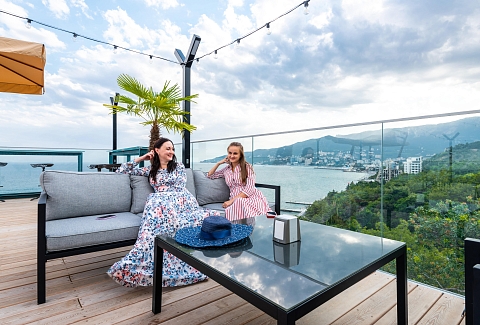 Самолетом до аэропорта г. Симферополь, далее на рейсовом автобусе «Аэропорт-Ялта» до остановки «Массандра», далее пройти 2,2 км до отеля.