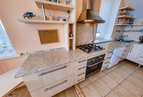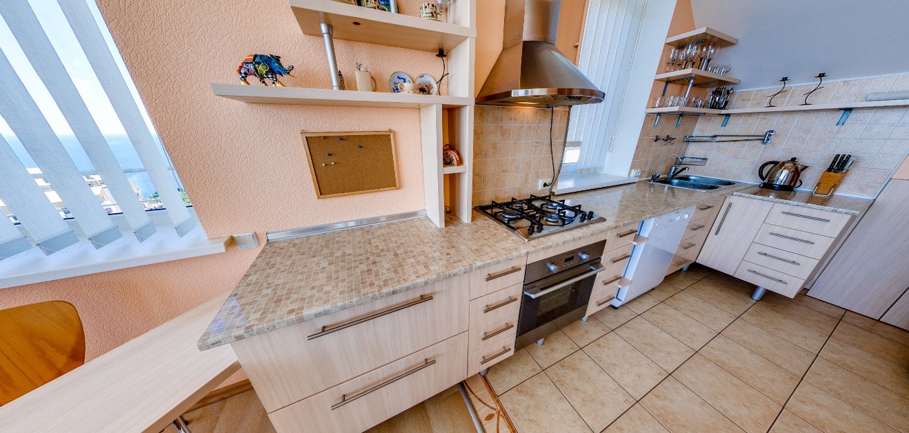 В номере: вешалка, диван, кровать двуспальная, прикроватные тумбочки, стол, стулья, тахта, тумба, шкаф, микроволновая печь, набор посуды, плита электрическая, стиральная машина, телевизор, холодильник, электрочайник