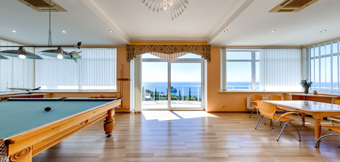 Везде имеется кухня-столовая отличной комплектации и гостиная с камином и бильярдным столом — сердце дома.На территории организована мангальная площадка и обустроены зоны отдыха, видовые террасы, есть открытый бассейном. Среди услуг — парковка и беспроводной интернет. В 15 минутах ходьбы живописный песчано-галечный пляж.