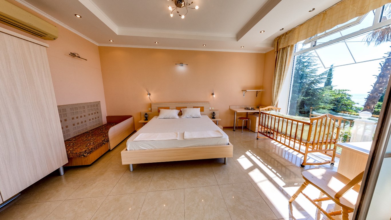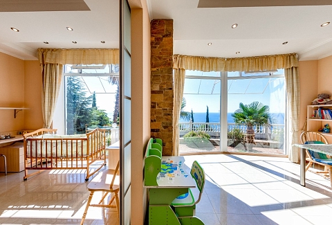 Вилла Family Elite — современный дом VIP – класса, находится в поселке Гурзуф, расположенном на Южном берегу Крыма. В шаговой доступности — набережная, кафе, диско-бары, за час может доехать до Ялты и главных достопримечательностей побережья — Ласточкиного гнезда, Ливадийского дворца, нижней станции канатной дороги, ведущей к вершинам Ай-Петри.Четырехэтажная вилла размесилась на благоустроенном участке с ландшафтным дизайном. К услугам гостей комфортабельные номера, в планировке которых реализована идея — у каждого члена семьи должно быть личное многофункциональное пространство – с полноценной зоной спальни, гостиной, индивидуальными раздельными санузлами с ванными.