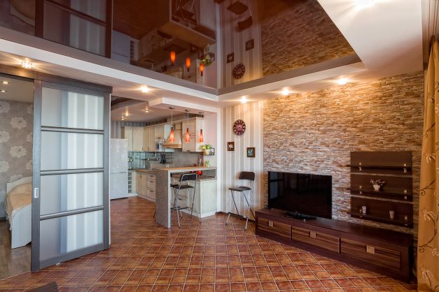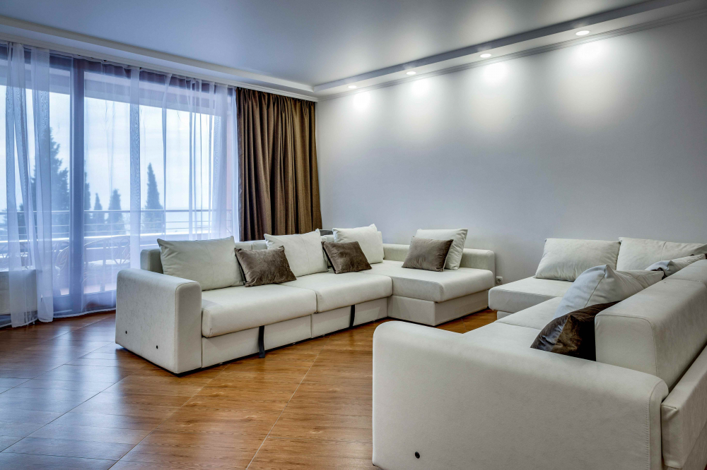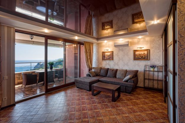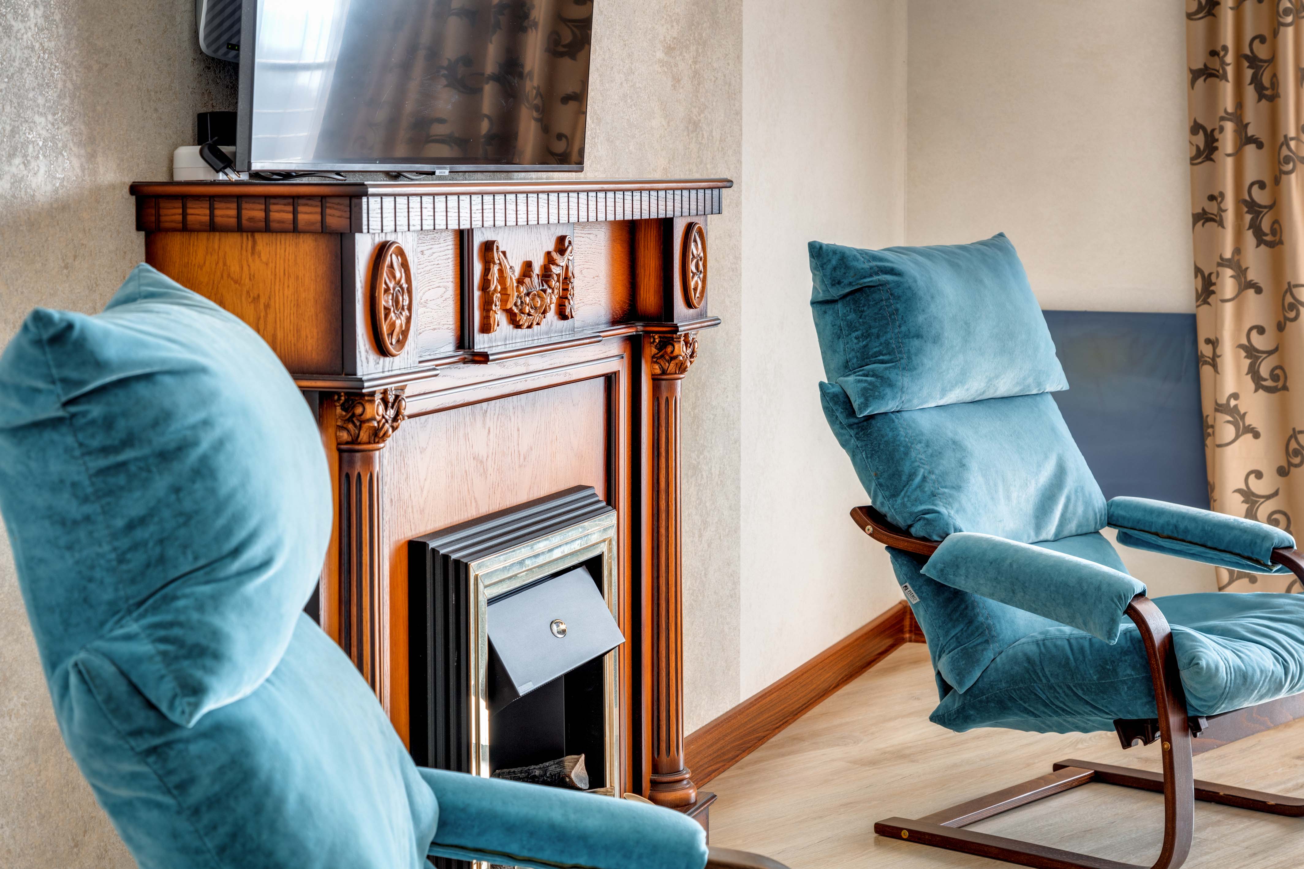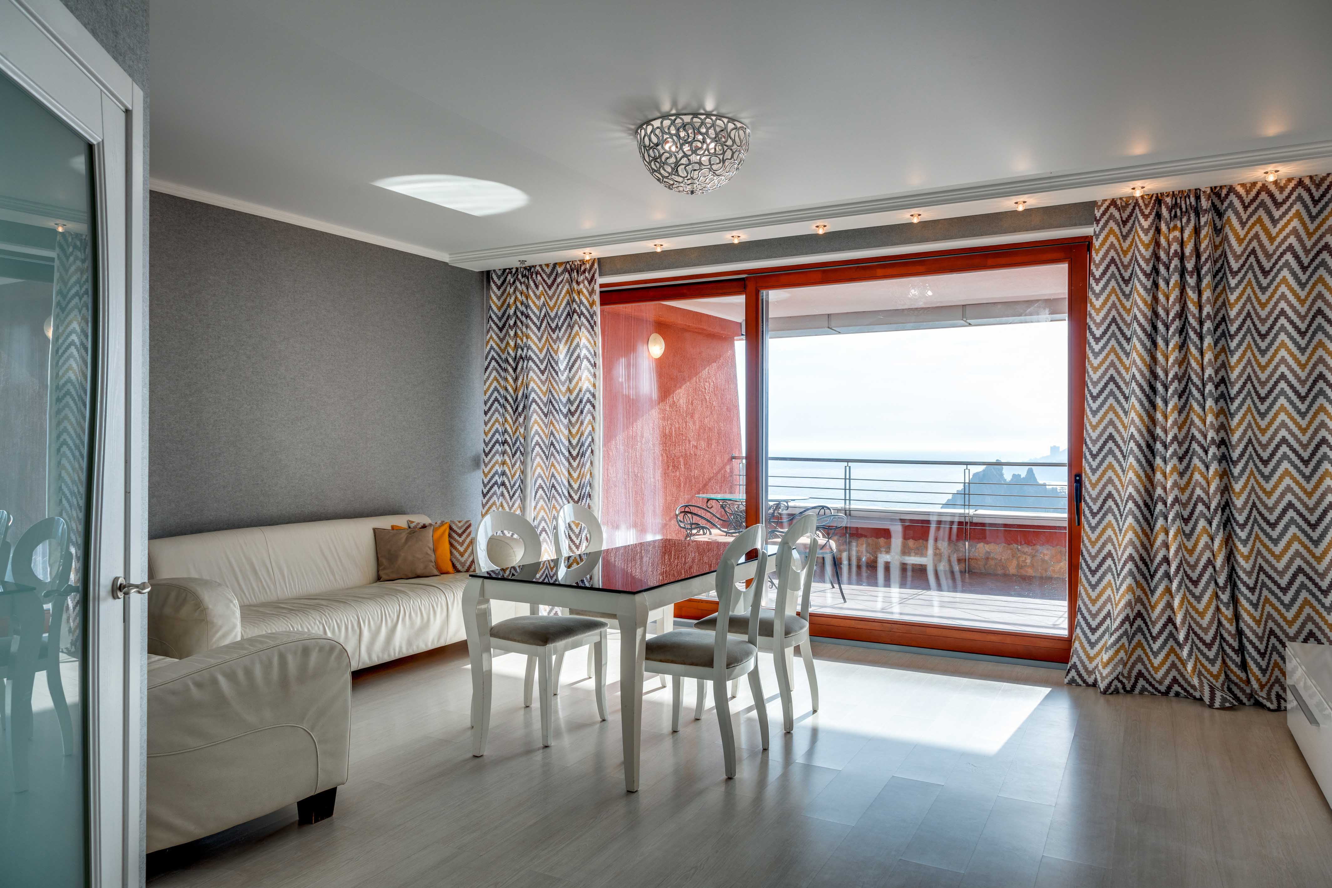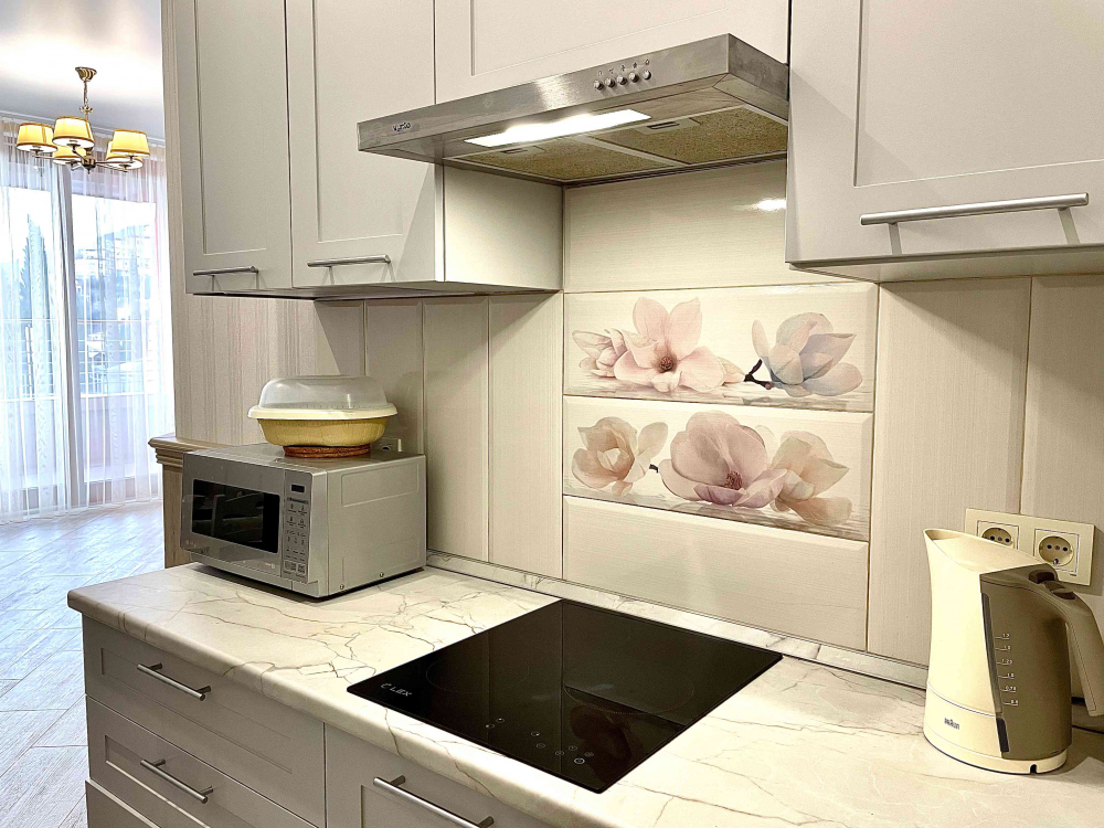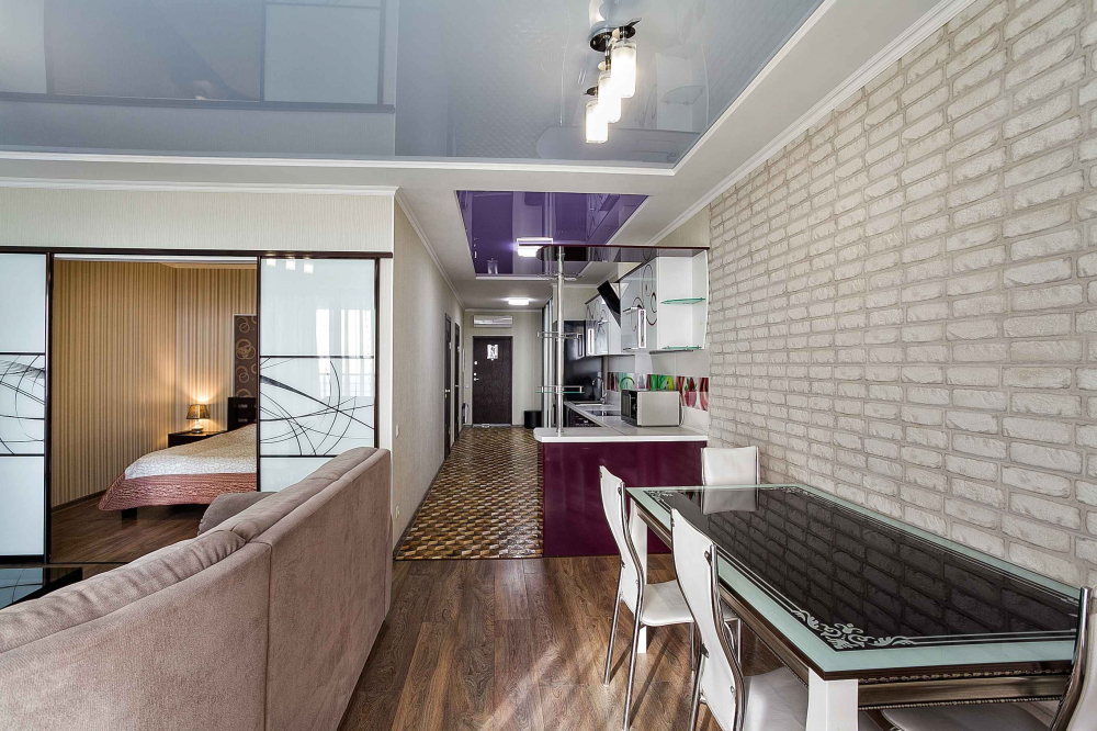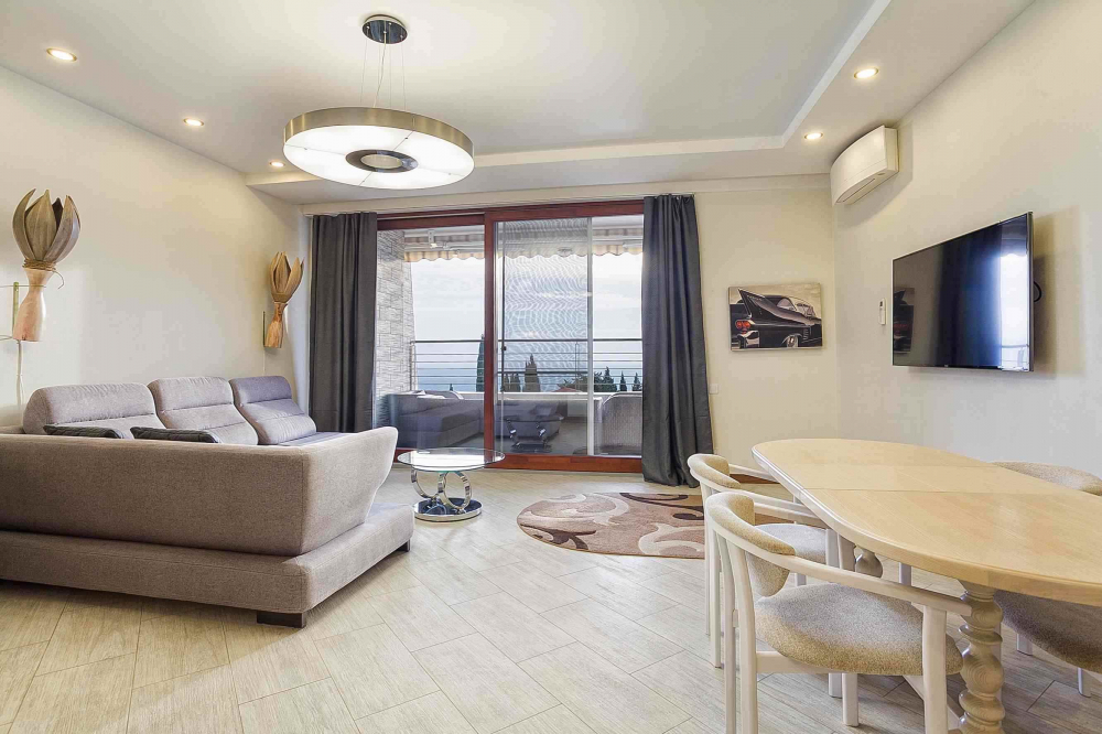 В номере: вешалка, диван, диван раскладной, зеркало, кровать двуспальная, кровать односпальная, кухонная мебель, прикроватные тумбочки, стол, стулья, шкаф, кондиционер, микроволновая печь, плита электрическая, телевизор, холодильник, электрочайник