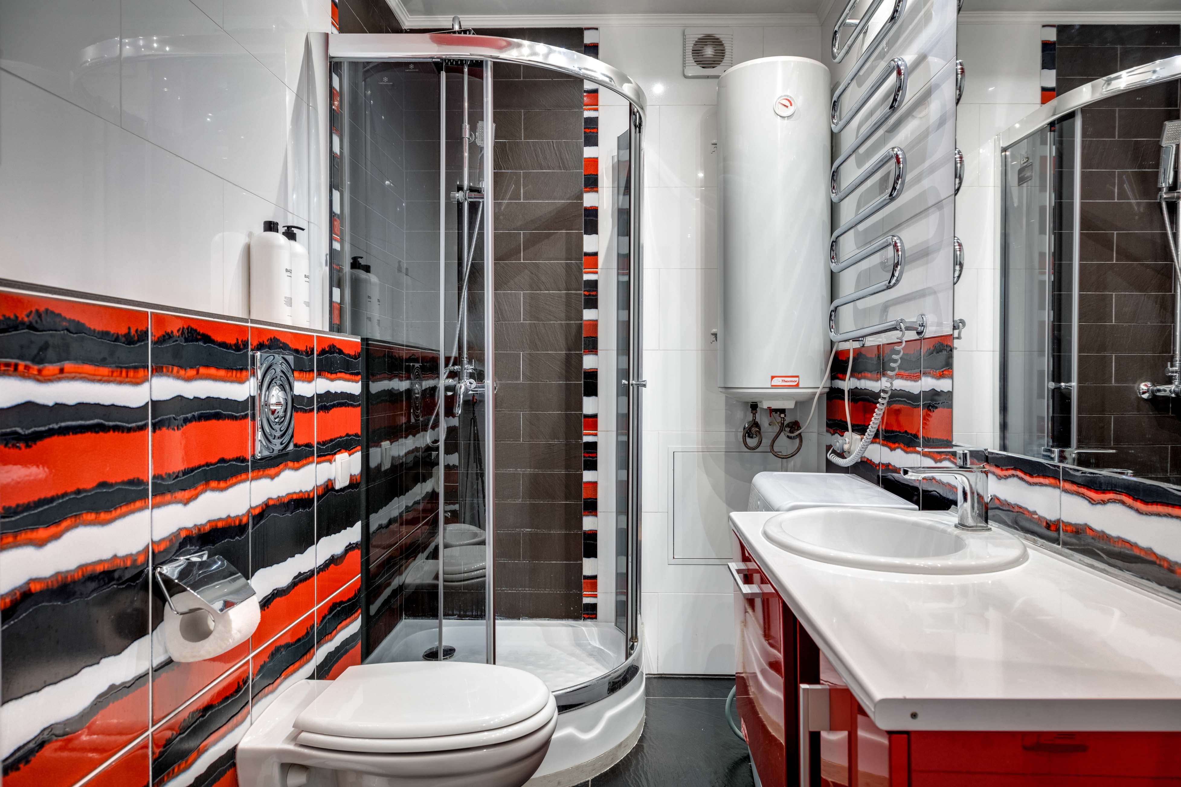 Санузел: с душем, туалетные принадлежности
