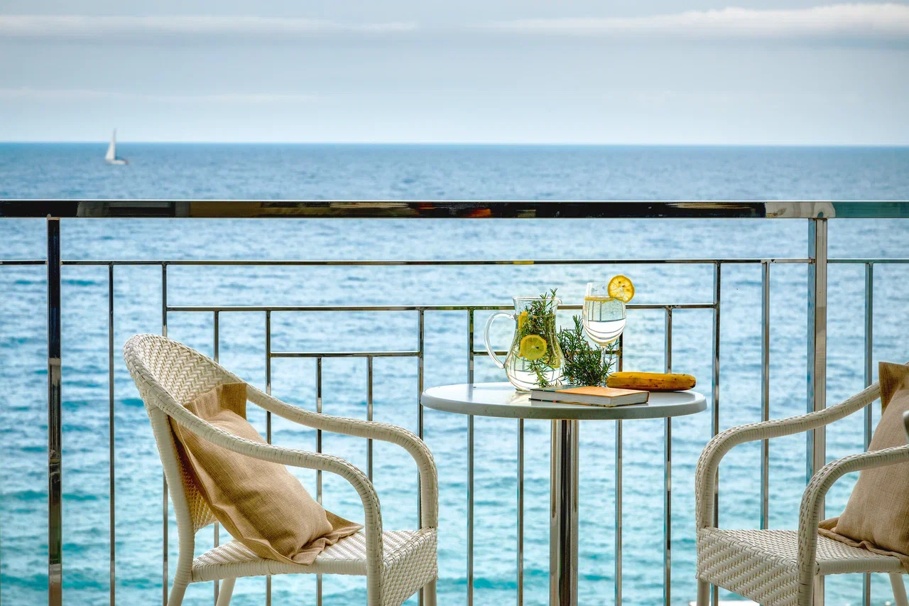 Отель Palmira Palace расположен на побережье и имеет оборудованный всем необходимым для комфортного отдыха частный закрытый галечный пляж, где всегда чисто, свободно и можно провести сколько угодно времени. Пляжный комплекс расположен в нескольких минутах ходьбы от отеля, а спуск к побережью возможен на панорамном лифте, с которого открывается прекрасный вид на море.