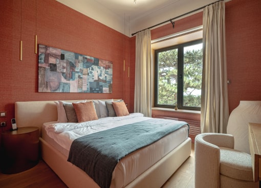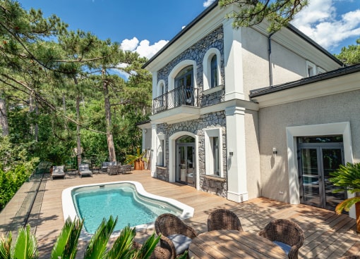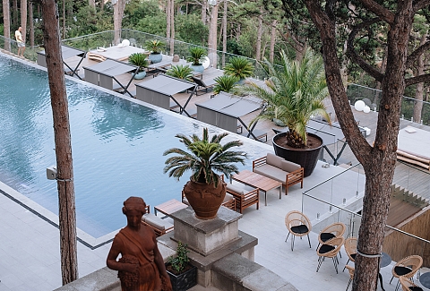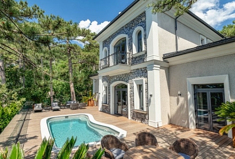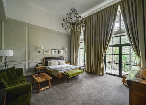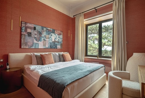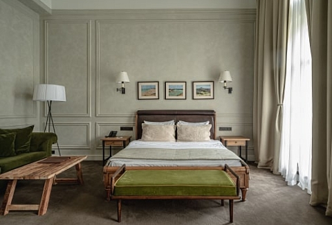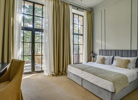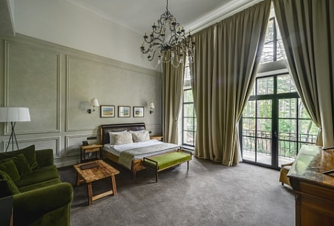 Дорога до аэропорта и железнодорожного вокзала займет час-полтора. Двухэтажное восстановленное историческое здание занимает благоустроенную территорию площадью 5 гектаров. Гостей ждут 10 номеров категории Стандарт, Делюкс, Супериор с индивидуальным продуманным дизайном. В номерах качественная современная мебель, панорамные окна и необходимая бытовая техника — телевизор-ЖК, кондиционер, фен. В ванных комнатах для отдыхающих подготовлены косметические наборы. На втором этаже работает ресторан, которые украшают антикварные экспонаты. В распоряжении отдыхающих открытый бассейн с пресной водой, русская баня. Для автовладельцев возле корпуса организована парковка, на территории хорошо ловит сеть wi-fi. Для прогулок по городу гости могут взять напрокат велосипеды. На автомобиле за 10 минут можно спуститься к пляжу. Все пляжи в окрестностях оборудованы, работают бары и кафе, есть раздевалки, прокат шезлонгов и зонтиков.