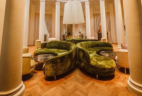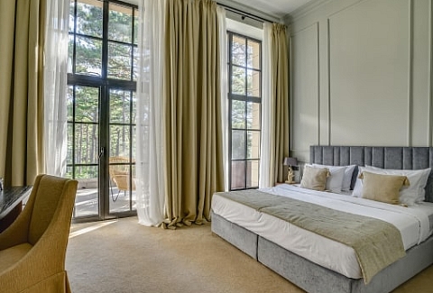 В номере: вешалка, диван, зеркало, кресла, кровать двуспальная, стол, стулья, тумба, шкаф, кондиционер, сейф, телевизор