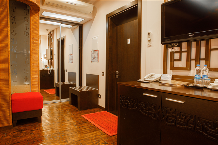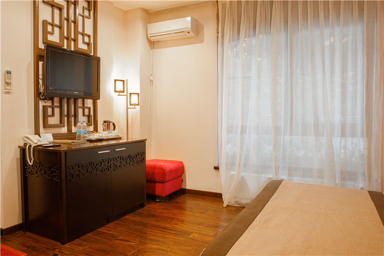 В номере: вешалка, зеркало, кровати односпальные /одна двуспальная кровать, прикроватные тумбочки, стол, стул, шкаф, кондиционер, мини-холодильник, сейф, телевизор ЖК, утюг, чайный набор посуды, электрочайник