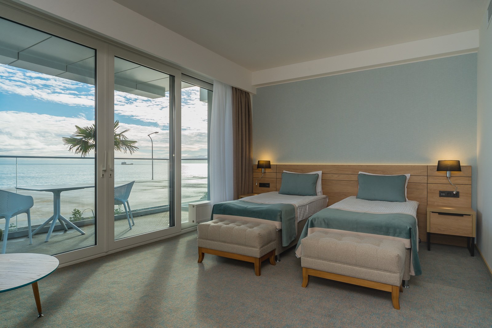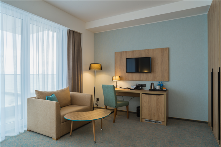 В номере: вешалка, зеркало, кровати односпальные /одна двуспальная кровать, набор мягкой мебели, прикроватные тумбочки, стол, стулья, шкаф, кондиционер, мини-холодильник, сейф, телевизор ЖК, чайный набор посуды, электрочайник