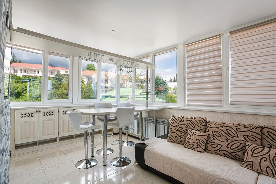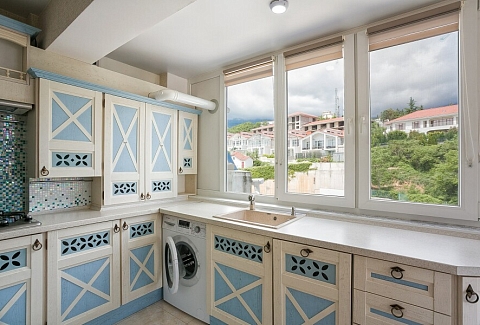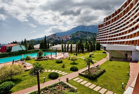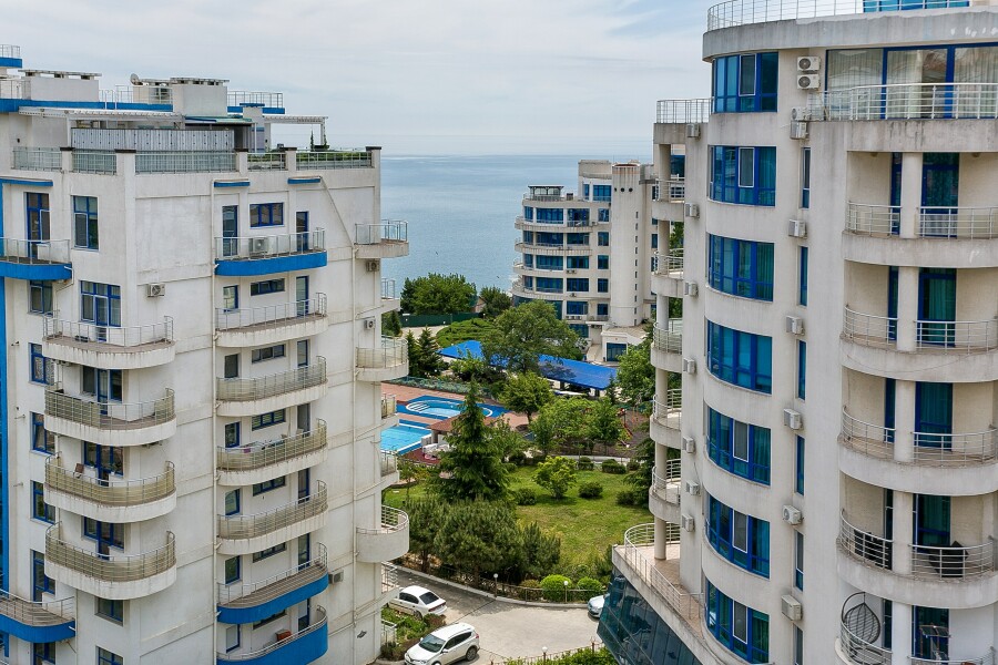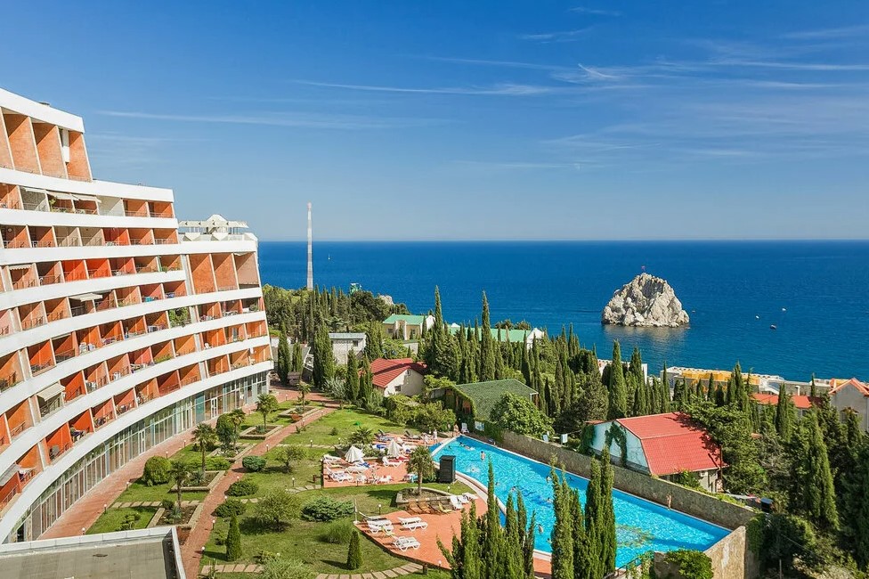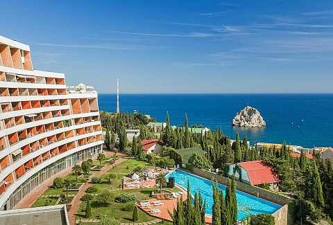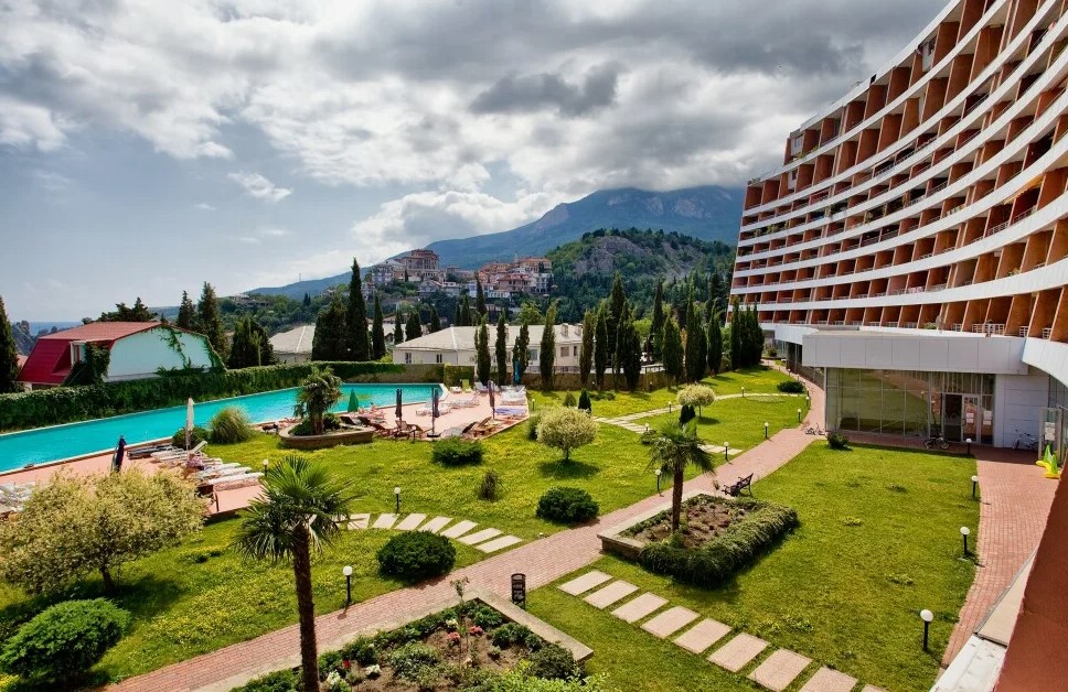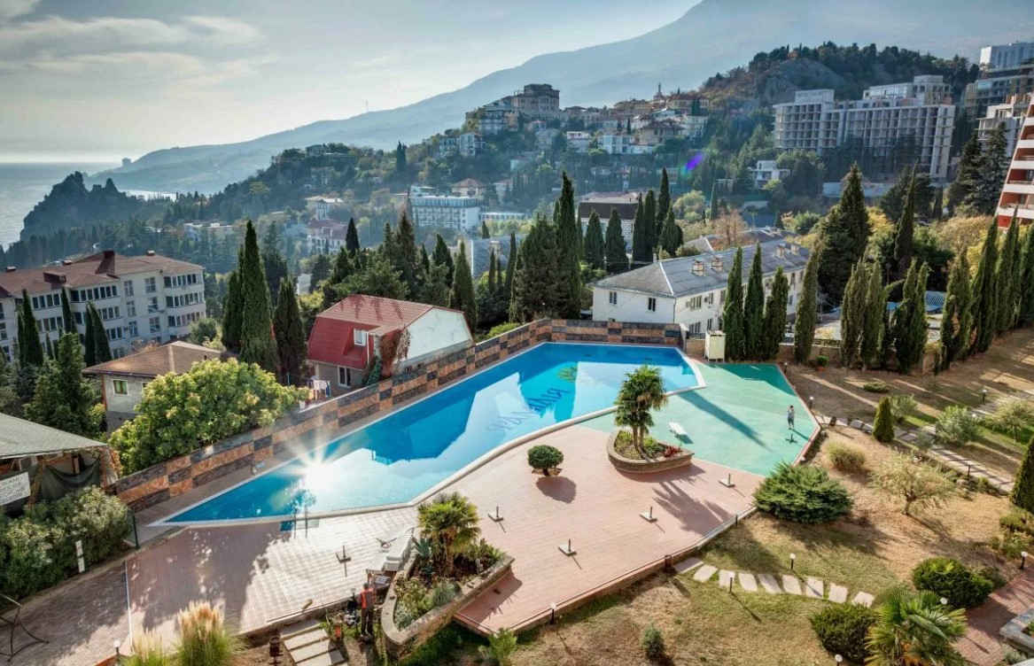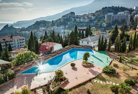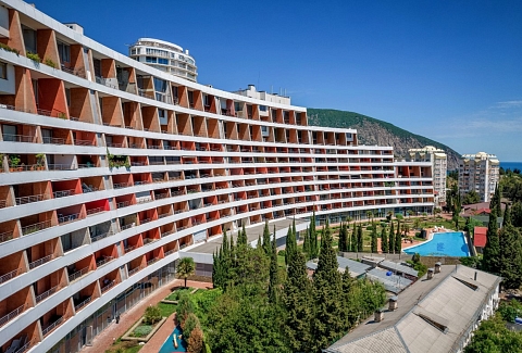 Дополнительно есть подземный паркинг и кафе.К услугам гостей современные апартаменты в разном стиле с кухней отличной комплектации, собственными санузлами. Все апартаменты с кондиционерами, плазменными телевизорами, большинство - с лоджиями и панорамным видом средиземноморского типа - на море, горы, субтропический ландшафт крымской Ривьеры.До благоустроенной набережной 15 минут по комфортной дороге по тротуару вдоль кипарисной аллеи, с минимальными перепадами высоты. Пляжная зона ок. 2 км с мелко-средней галькой, пологим входом в воду, чистым морем.