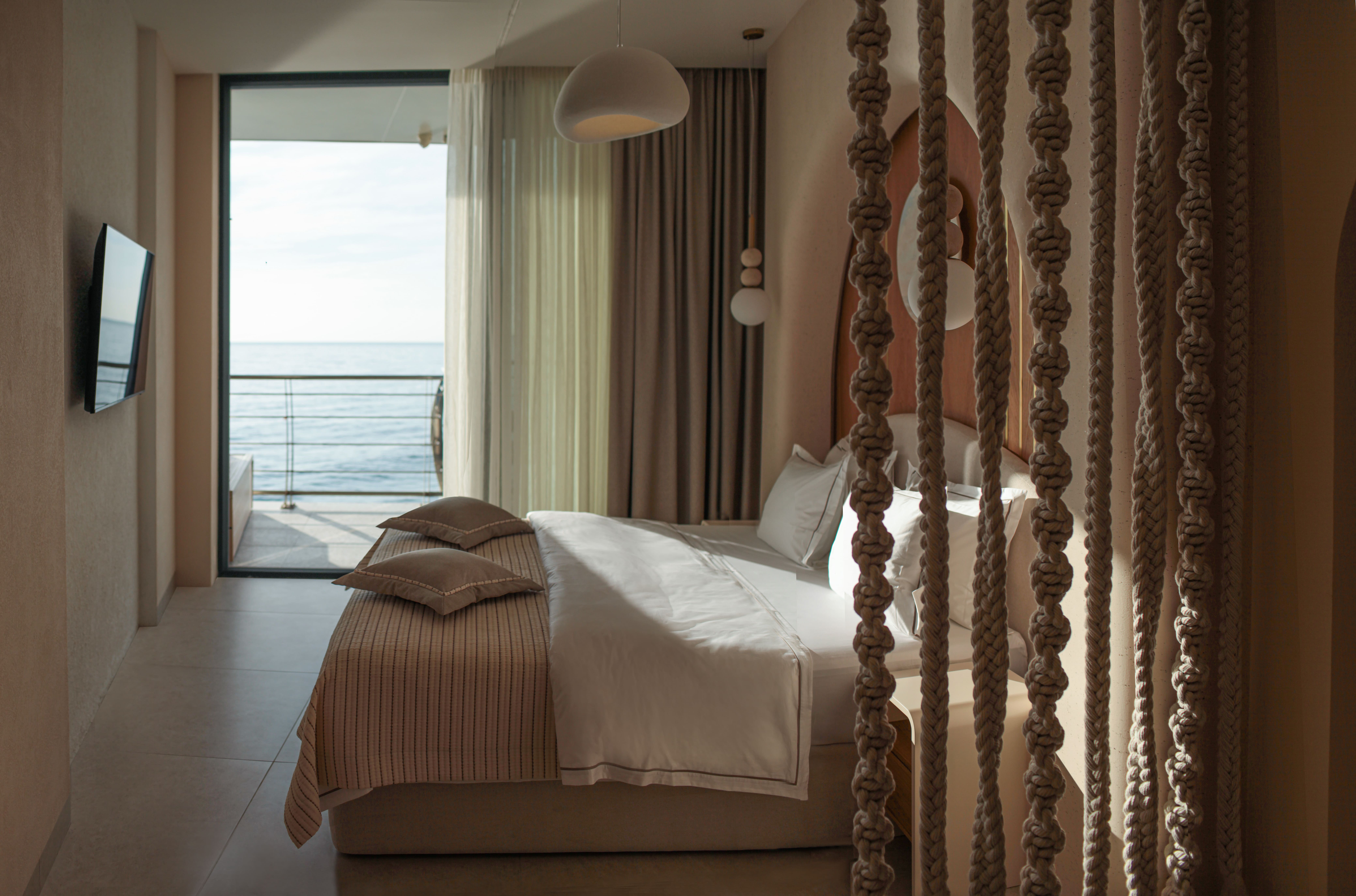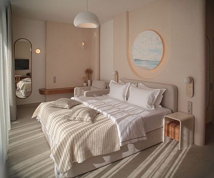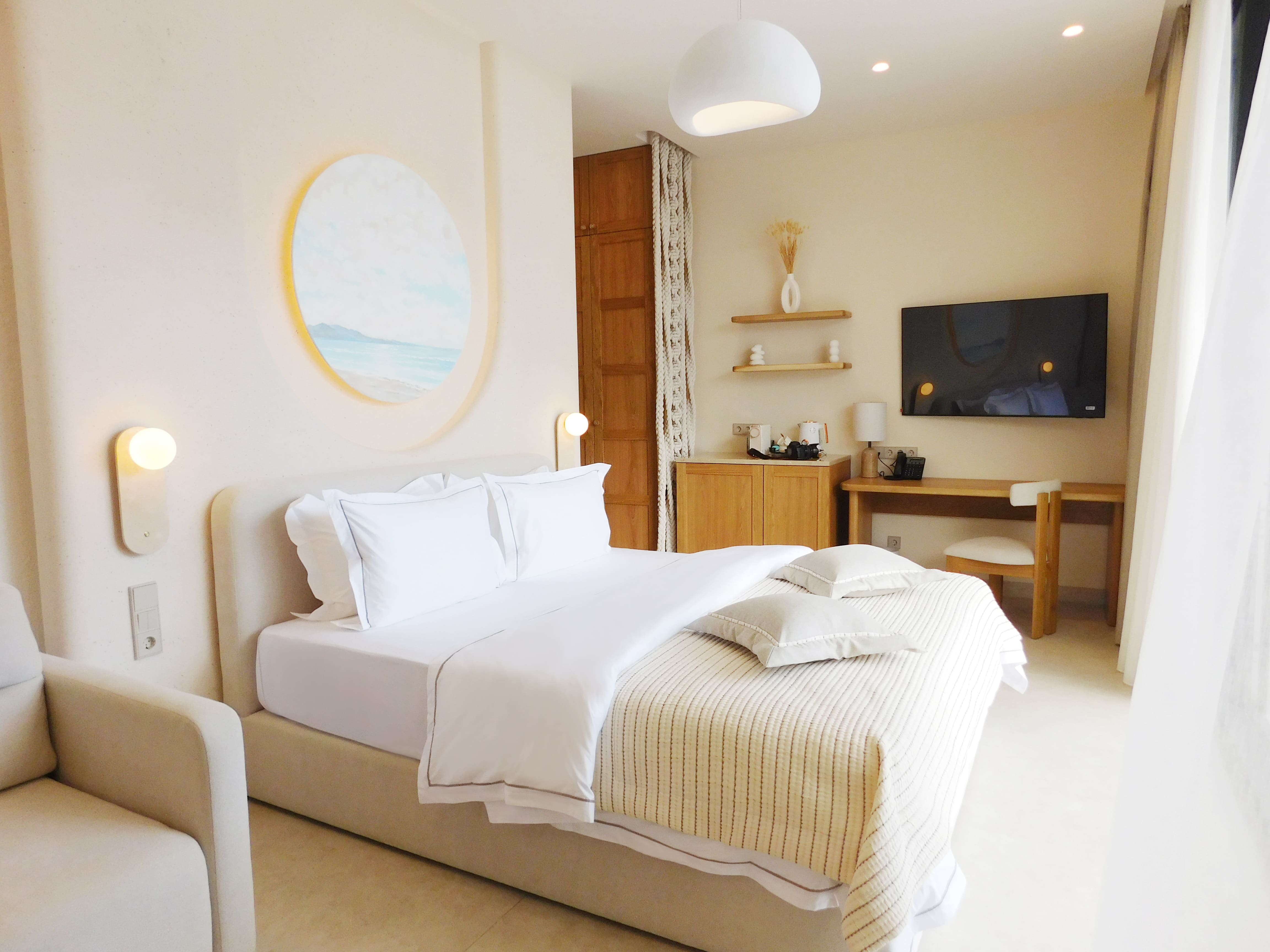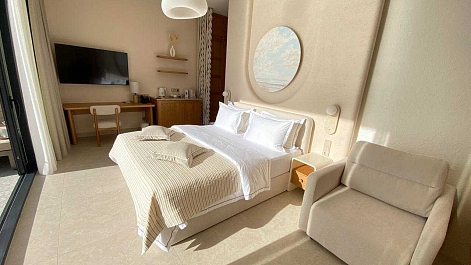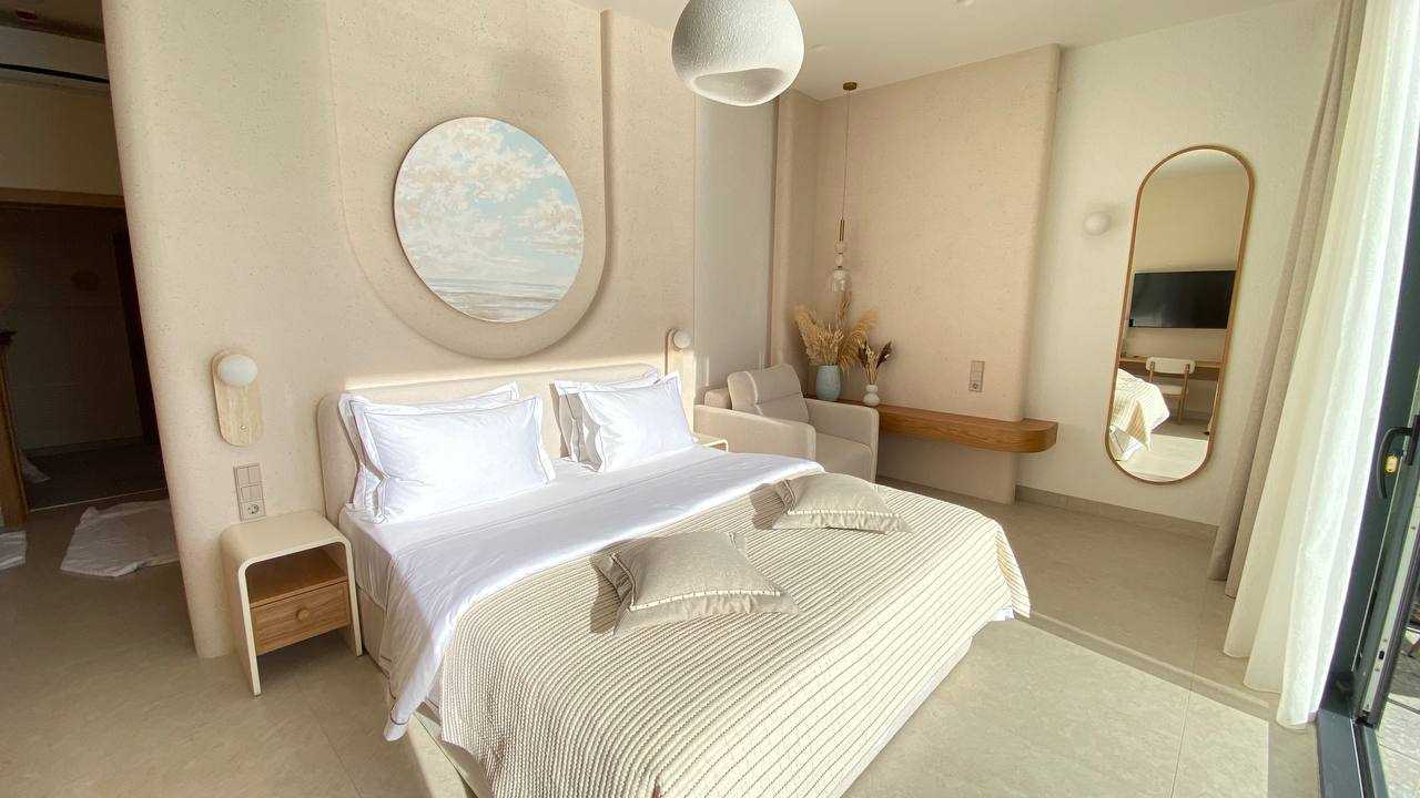 В номере: вешалка, зеркало, кровать двуспальная, прикроватные тумбочки, шкаф, кондиционер, телевизор, холодильник