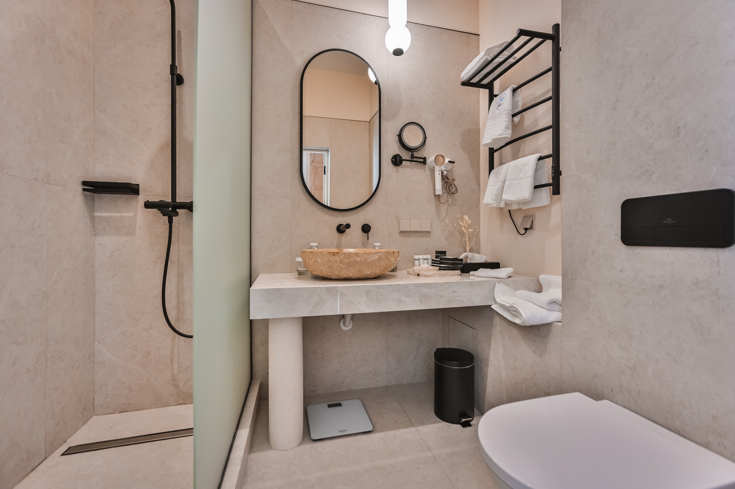 Санузел: с душем, туалетные принадлежности, фен