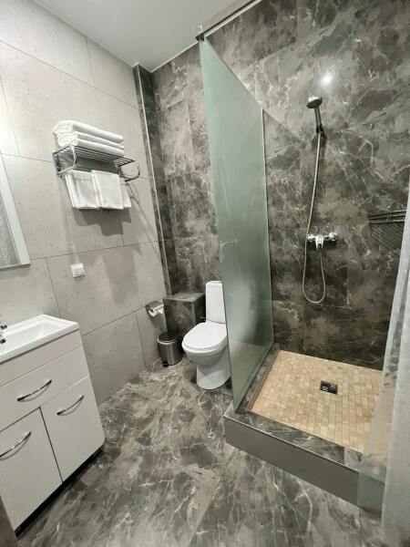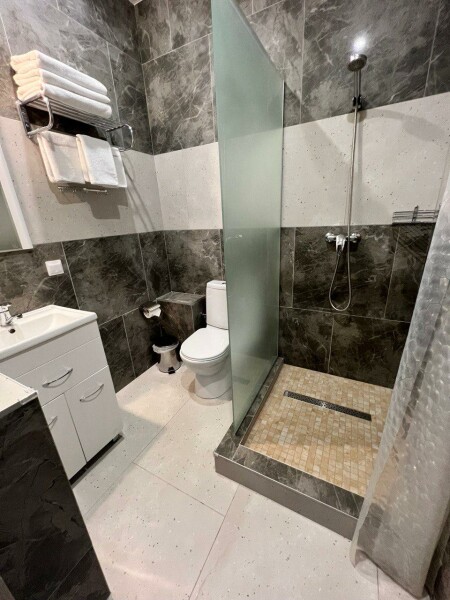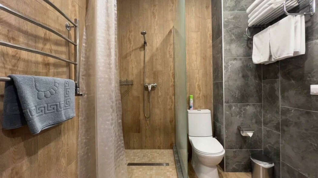 Санузел: с душем, туалетные принадлежности, фен