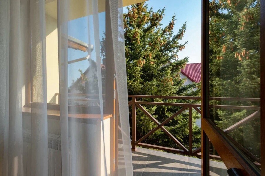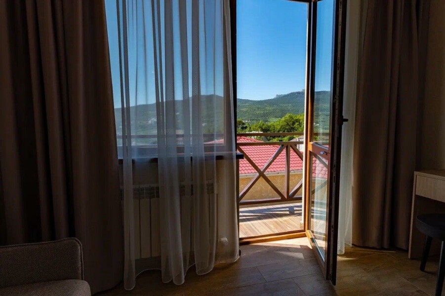Самолетом до аэропорта г. Симферополь, далее автобусе №49 в направлении «Марьино» до остановки «Марьино», далее на маршрутном такси Симферополь-Ялта в направлении «Автовокзал Ялта» до остановки «Автовокзал Ялта», далее на маршрутном такси №17 до остановки «Детский сад», далее пройти пешком 790 м до гостевого дома.