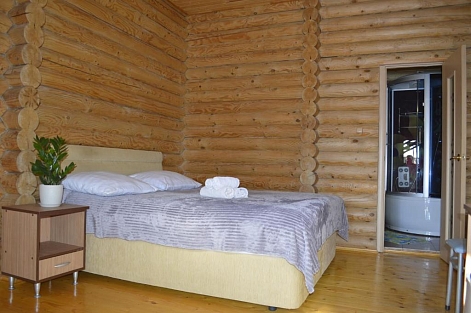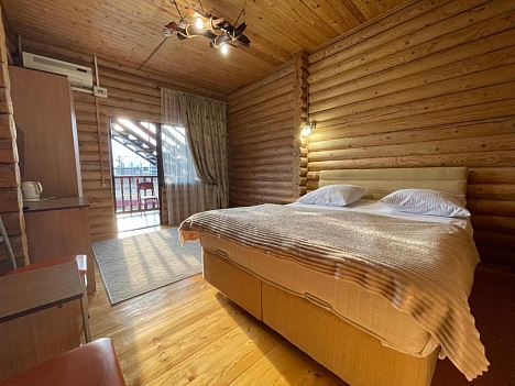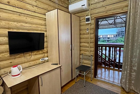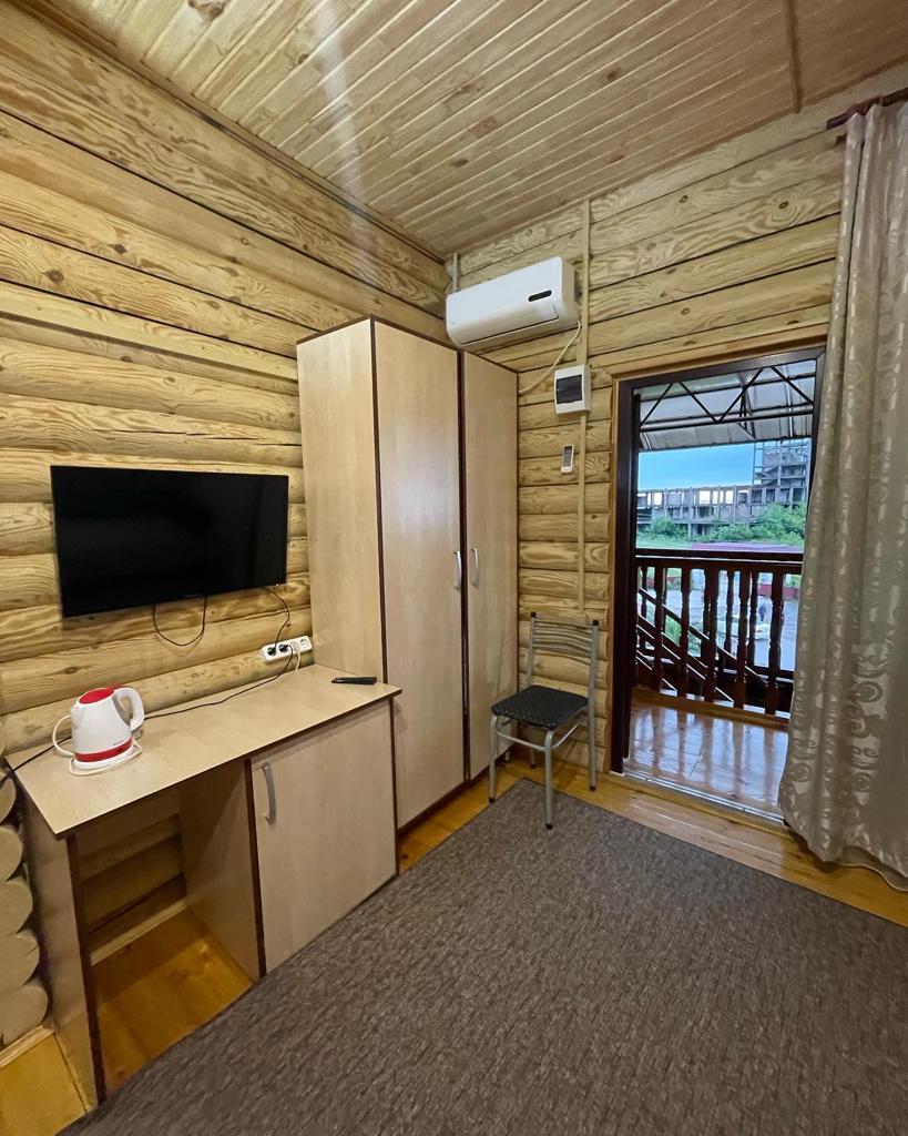Гагра. Неподалеку расположен аквапарк, дельфинарий и современная бальнеолечебница.Гостевой дом представляет собой 3-х этажное здание c мансардой, построенное из добротного оцилиндрованного бревна. Все отдыхающие могут расположиться в номерах, в которых имеются телевизор, холодильник, кондиционер. В каждом номере есть интернет Wi-Fi и бесперебойное электро и водоснабжение (холодная и горячая вода). Все комнаты имеют душевые кабинки. На территории гостевого дома предусмотрена автостоянка.