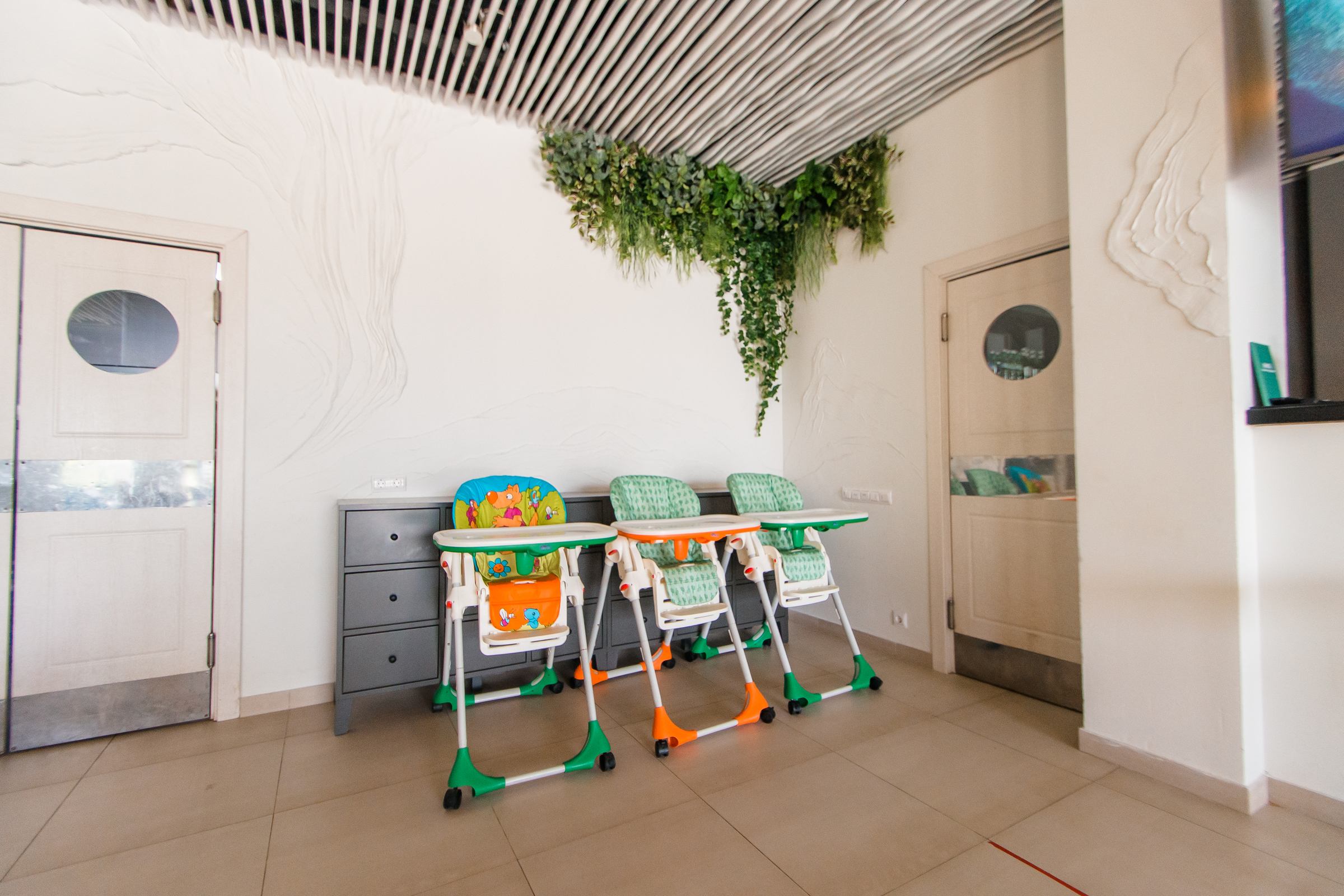- детские стульчики в зале питания