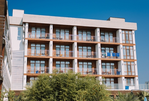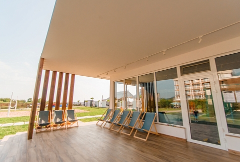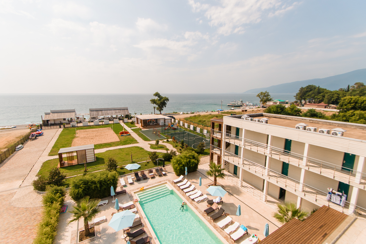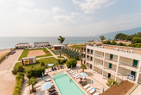 - пользование оборудованным пляжем и пляжным инвентарём (шезлонгами, зонтами, полотенцами) в период высокого сезона