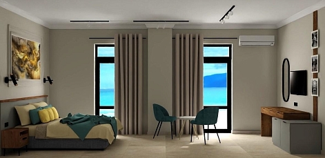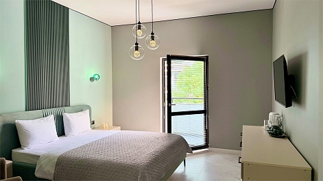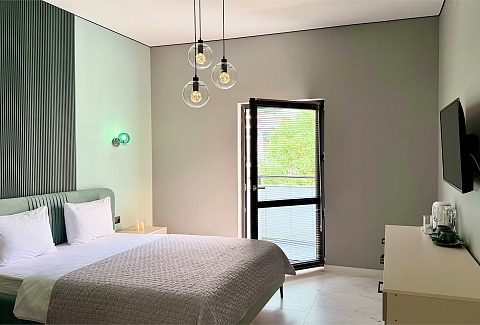 Гостям доступны стильные апартаменты, где можно насладиться живописными видами на горные склоны с уютной террасы с ротанговой мебелью. В оснащение входит современная бытовая техника, кондиционер, собственный санузел с феном, а также полный набор полотенец и гигиенических принадлежностей. Приятные мелочи: чай, кофе, бутилированная вода, беспроводной интернет и телевизор. Здесь есть всё для приготовления любимых блюд — от утреннего эспрессо до полноценного ужина.На территории работает ресторан, чей зал выполнен в форме античной амфоры: панорамные окна и видовая терраса открывают бескрайнюю морскую гладь. В меню — свежие черноморские мидии и блюда современной европейской кухни. Каждое утро сервируют континентальный завтрак. Wi-Fi доступен в номерах.Это место создано для тех, кто ищет тишину, уют и размеренный ритм без лишней суеты. Отель одинаково подходит для пар, желающих романтического уединения, и для семей с детьми (до трёх лет размещаются без дополнительной платы). Благодаря удобному расположению и продуманной атмосфере здесь также комфортно остановиться активным путешественникам, планирующим насыщенное знакомство с регионом. Общее впечатление — гармония стиля, покоя и природной красоты.
