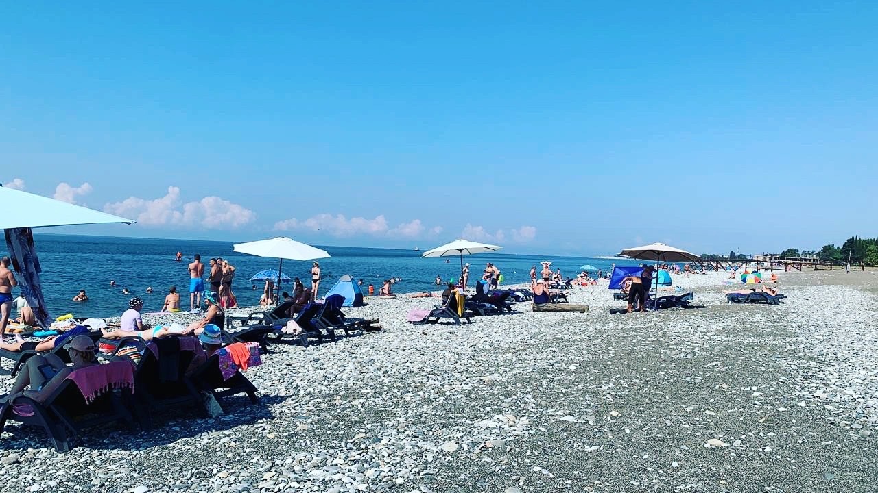 Поездом или самолетом до г. Сочи (Адлер), далее на общественном транспорте или на такси до «Казачьего рынка» (8 км от ж/д вокзала, 15 км от аэропорта), затем пройти пешком около 500 м до пограничного поста на р. Псоу до границы России и Абхазии. После самостоятельного прохождения паспортного и таможенного контроля до места отдыха можно доехать на автобусе, маршрутном такси или воспользоваться услугами частных водителей.