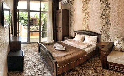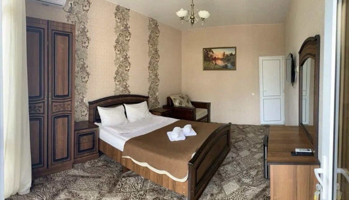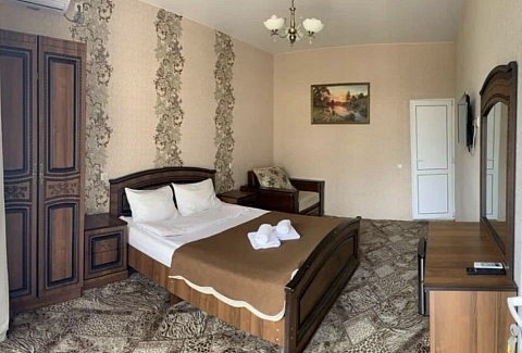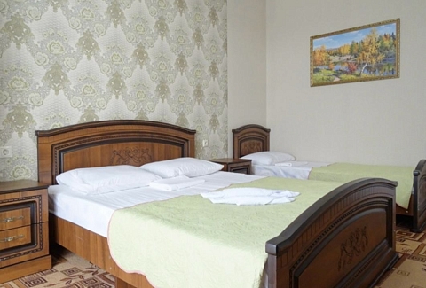В номере: вешалка, зеркало, кресло-кровать, кровати односпальные /одна двуспальная кровать, прикроватные тумбочки, пуфик, столик туалетный, шкаф, кондиционер, телевизор, холодильник